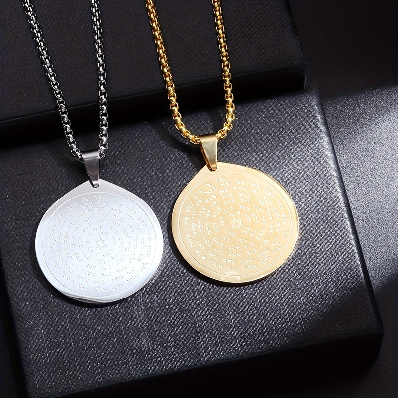 This pendant necklace features a hexagram rune design, made of stainless steel. It is a religious talisman that makes a perfect gift for men.