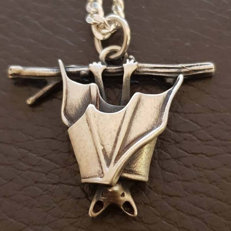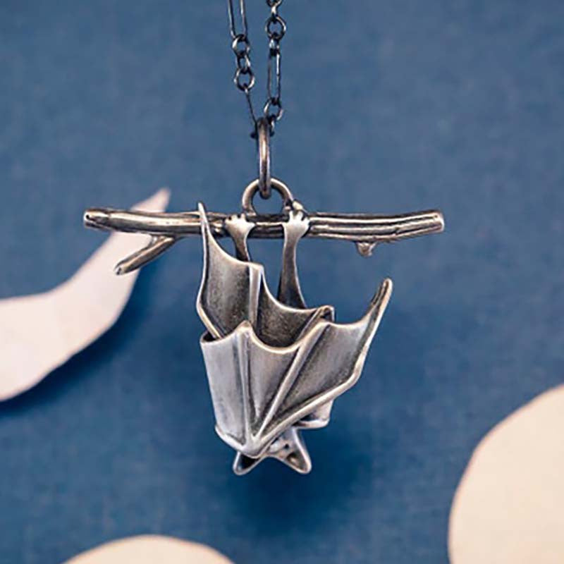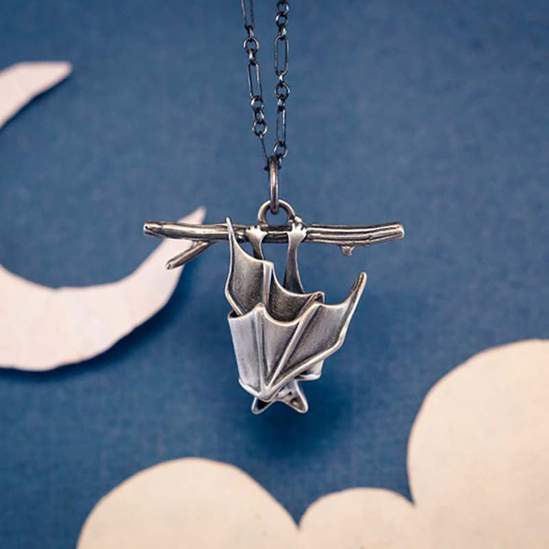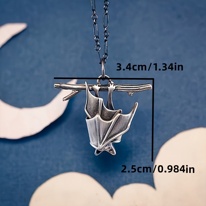 Add a touch of creativity to your outfit with this vintage inspired upside down bat shaped pendant necklace, perfect for both men and women.
