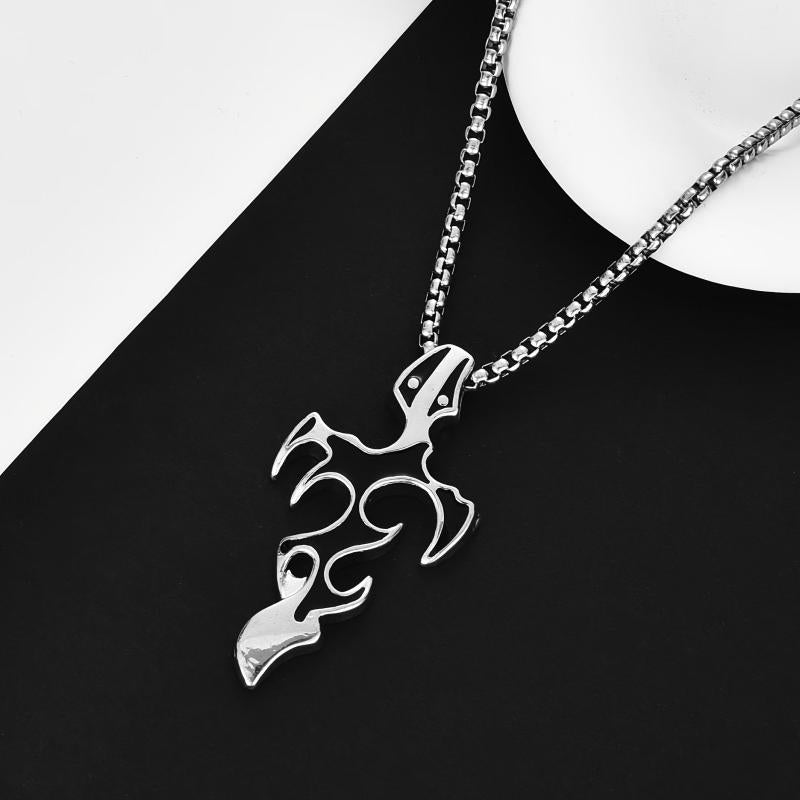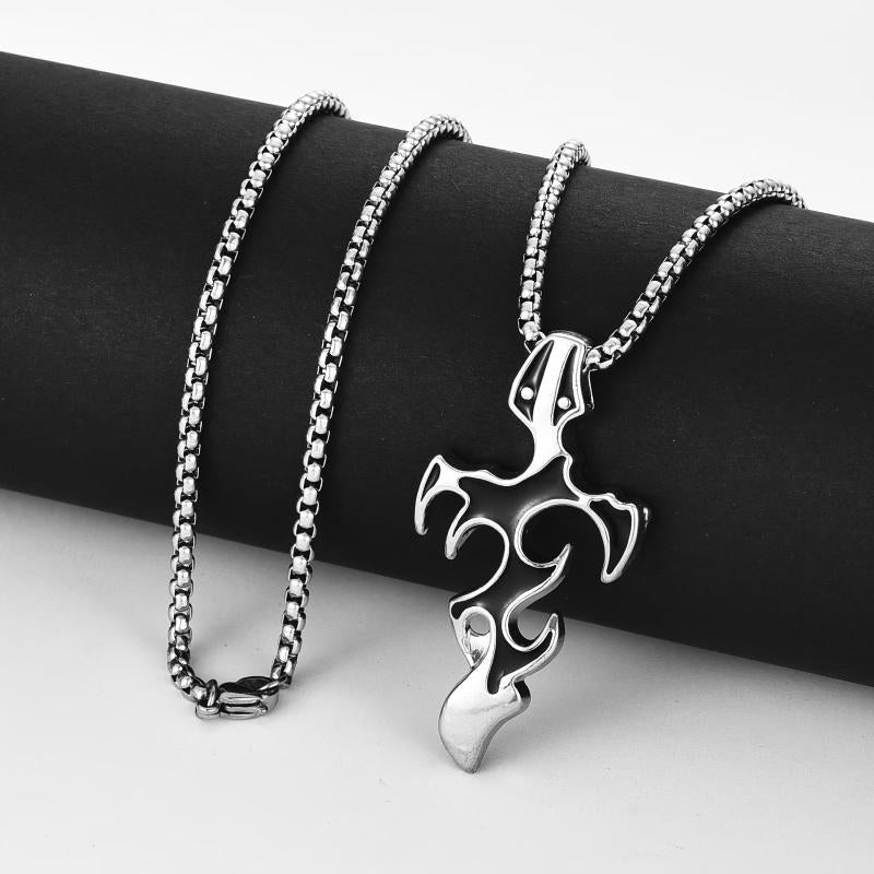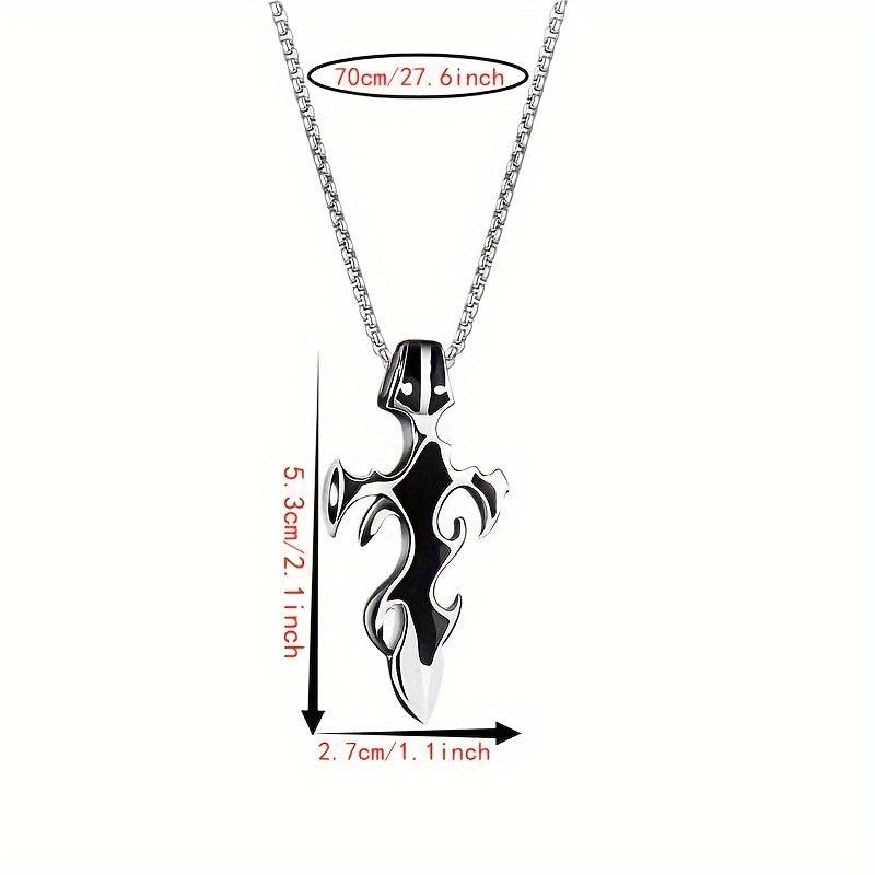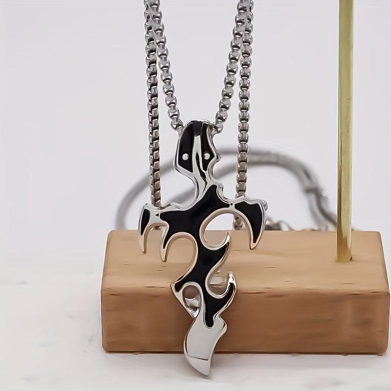 Add a stylish flare to your look with this funky flame cross pendant necklace featuring resin inlay. Made of 202 stainless steel, this accessory is perfect for any fashionable man.