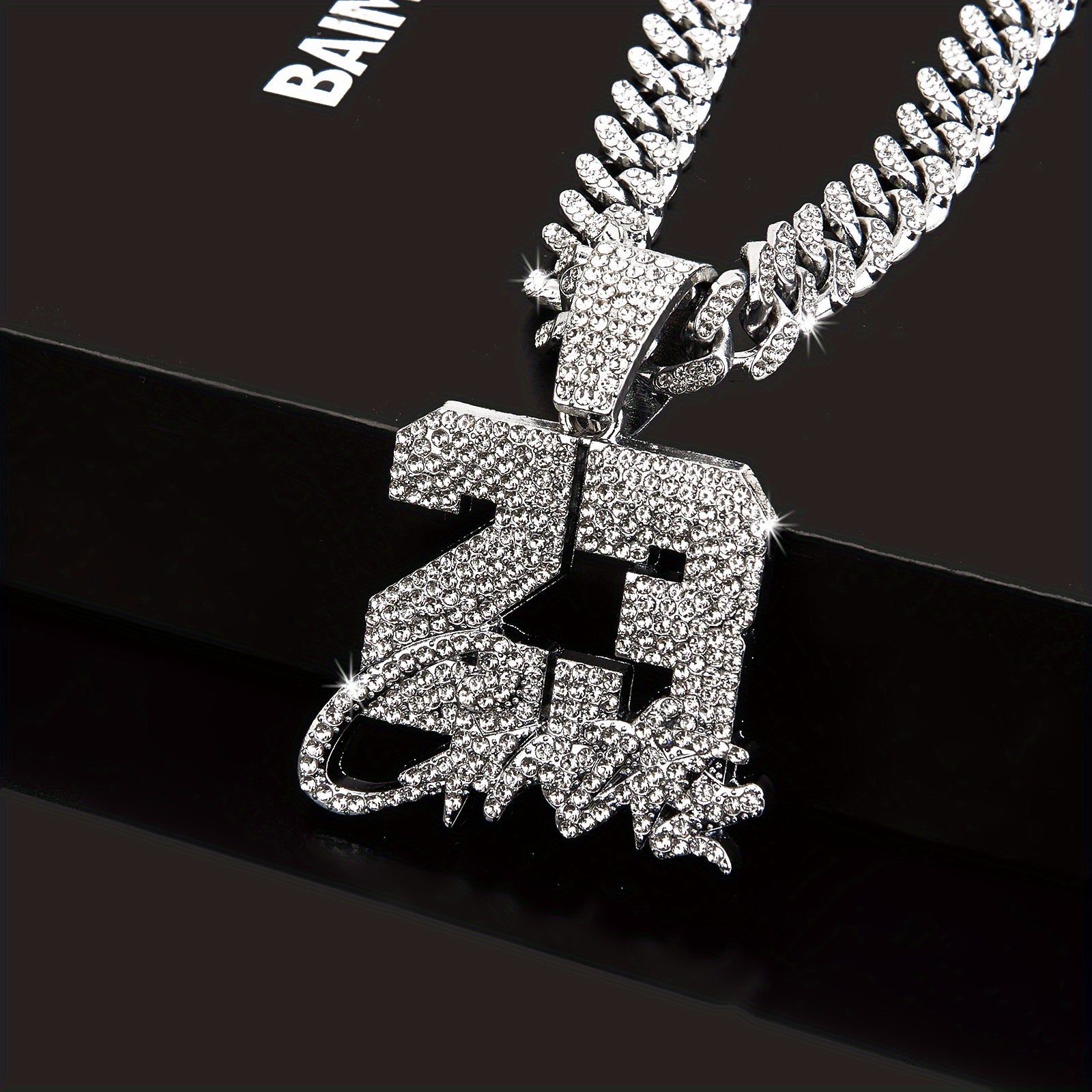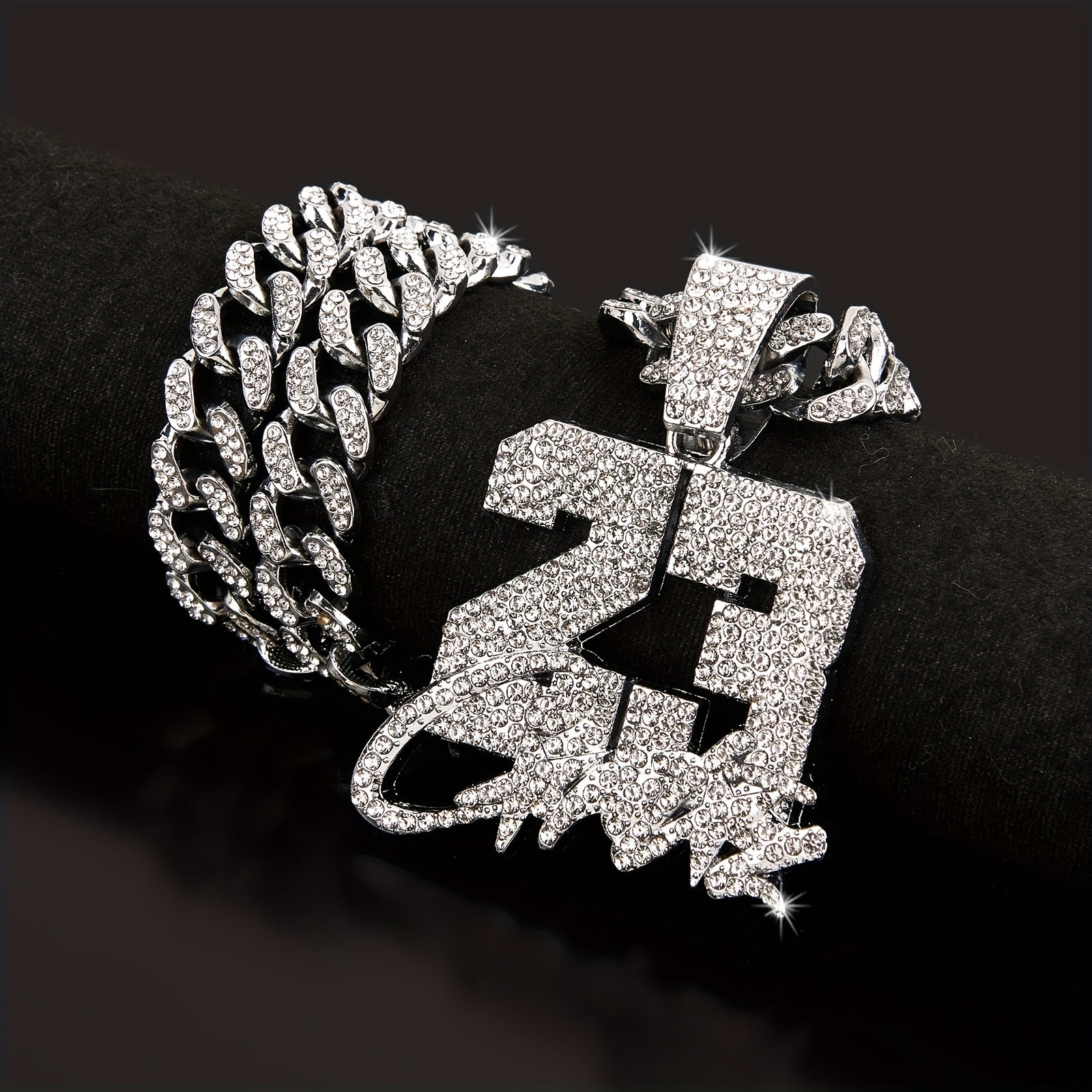 Elevate your style with this hip hop inspired No 23 pendant necklace adorned with rhinestones. Perfect accessory for men who love streetwear.