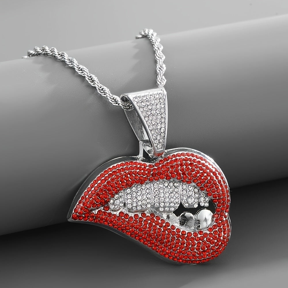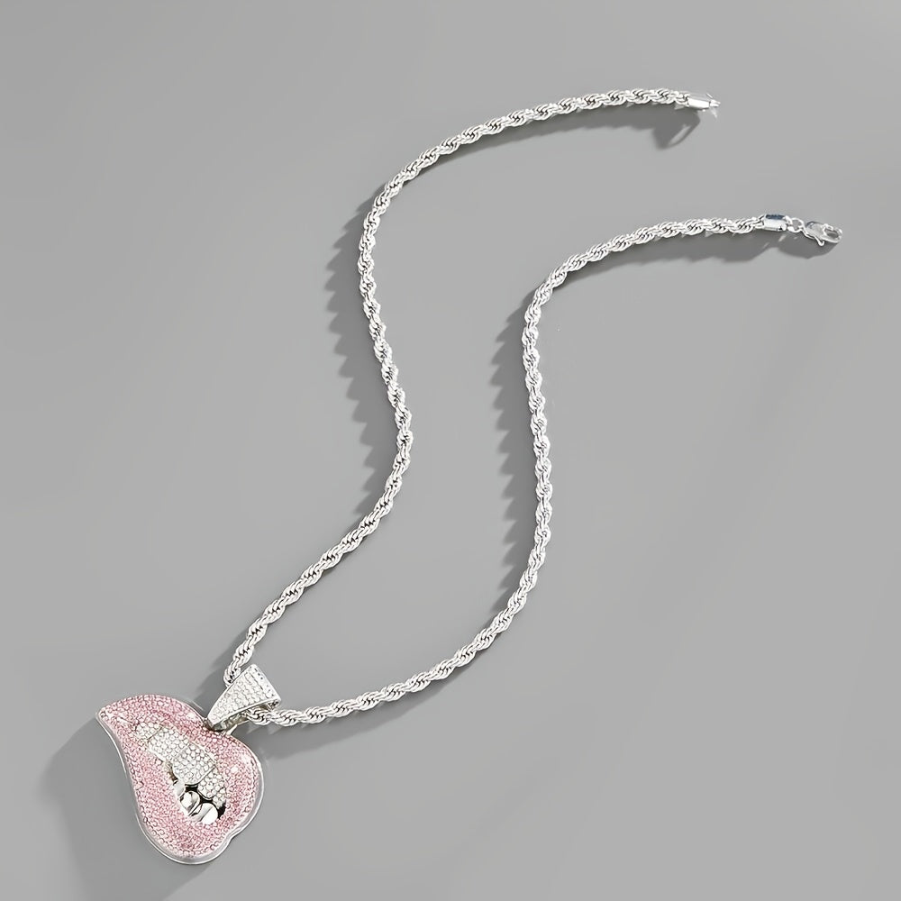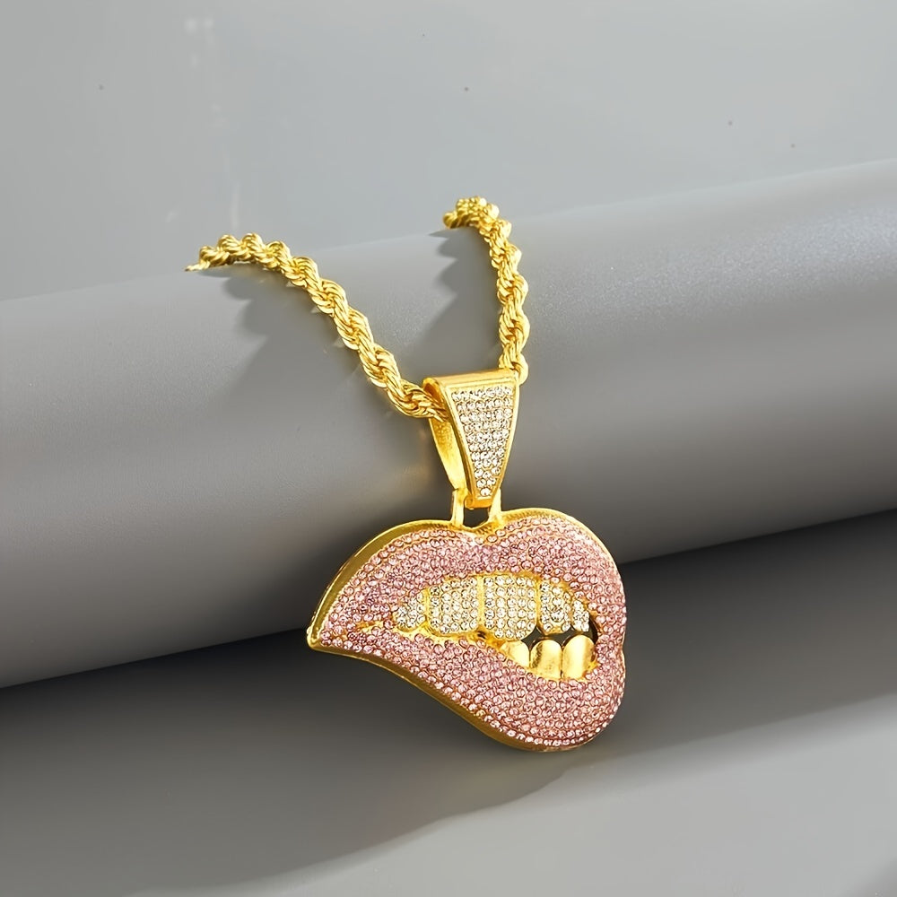 Make a bold statement with this exaggerated pink lips and teeth shape pendant necklace, perfect for couples.