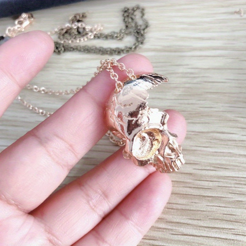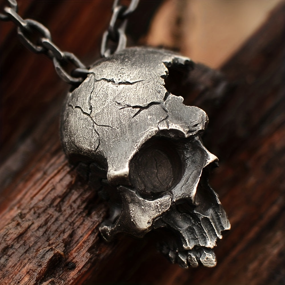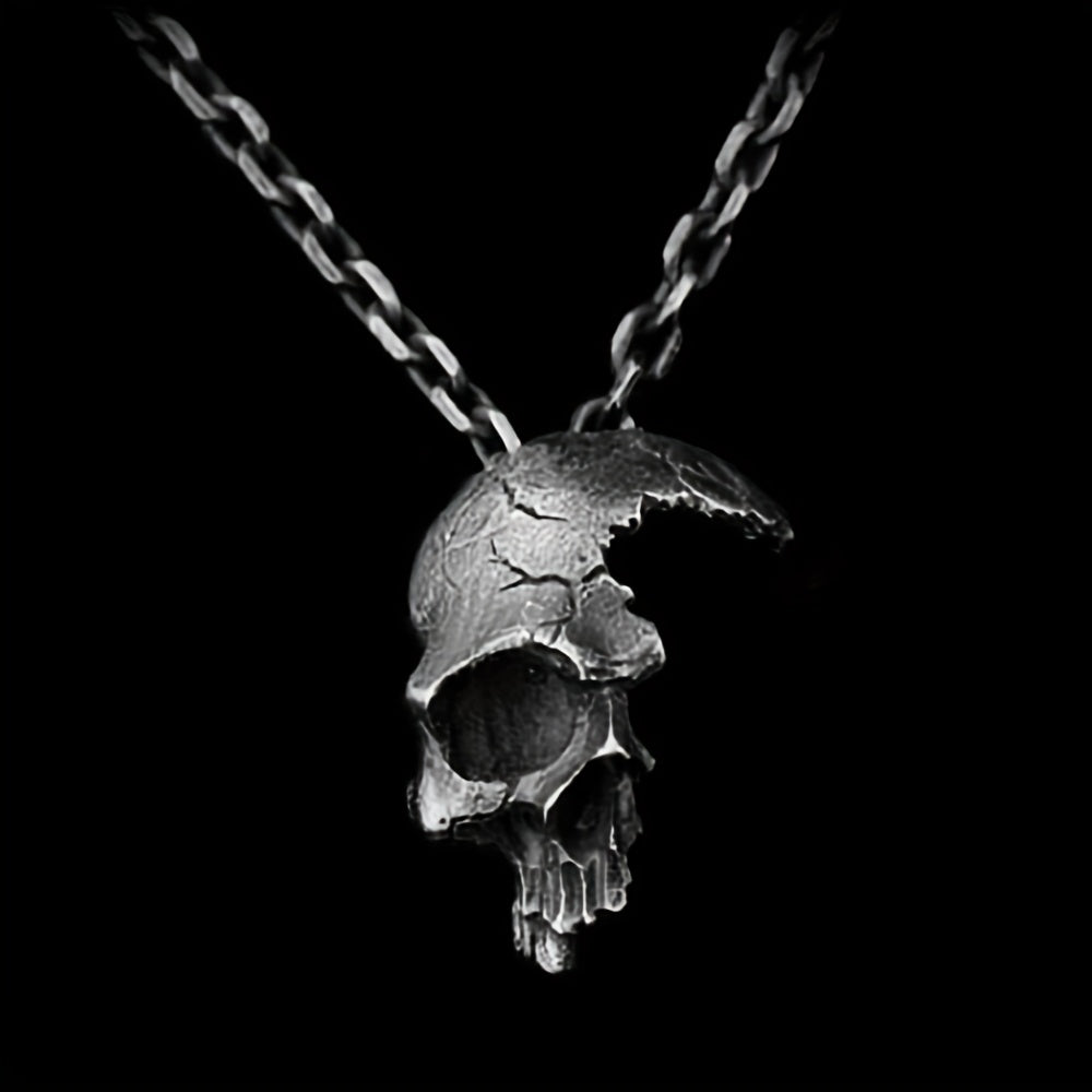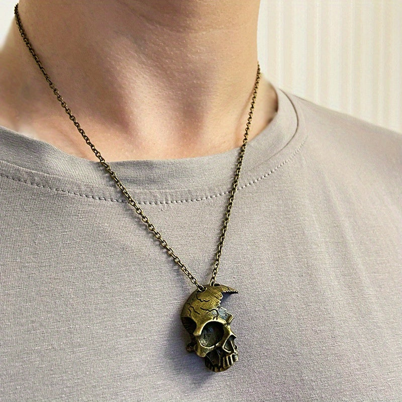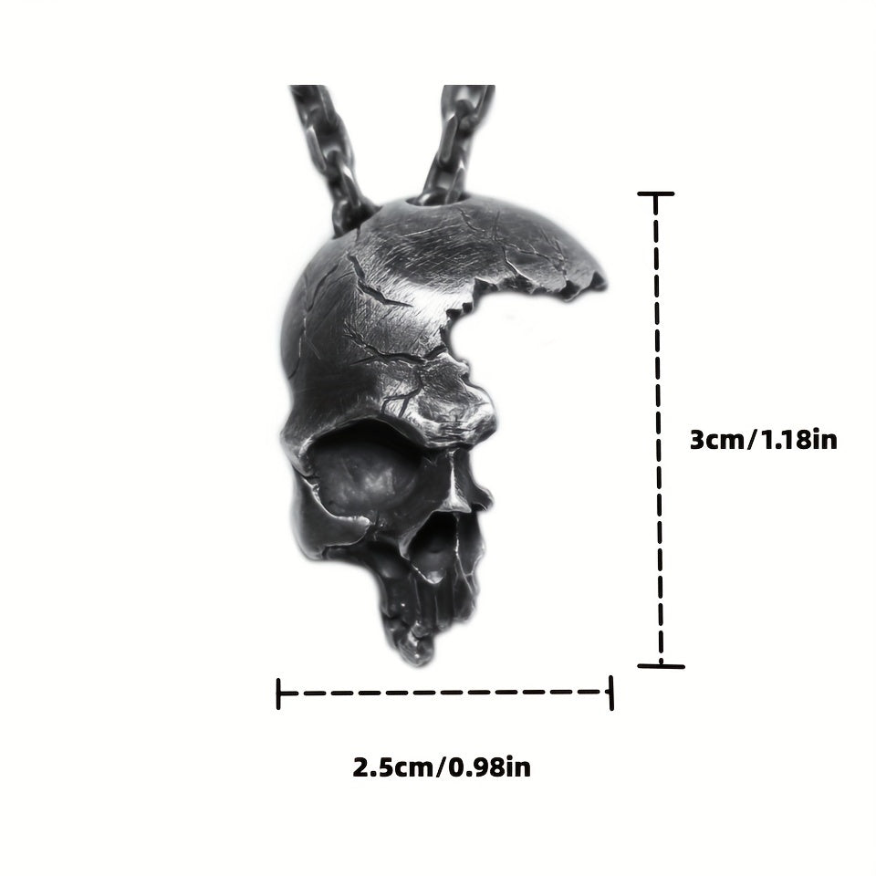 Unique half-face skull pendant necklace designed for men, perfect accessory for holiday parties. Gothic and punk style for a trendy look.