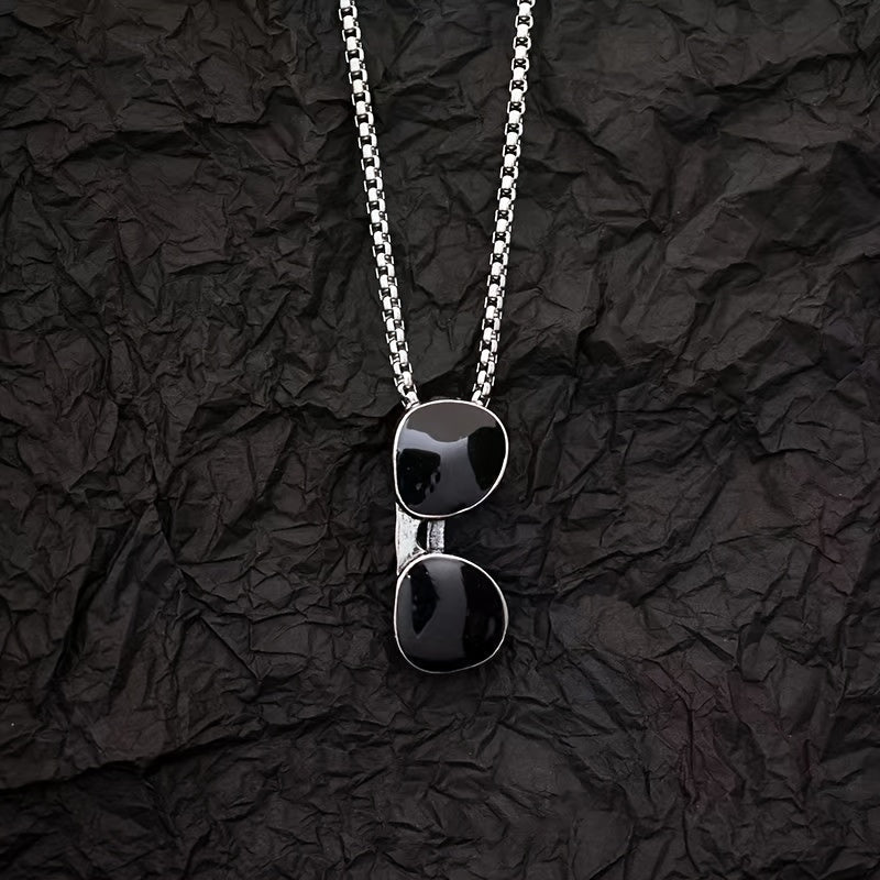 Hip Hop Sunglasses Pendant Necklace Titanium Steel Chain Jewelry Accessory