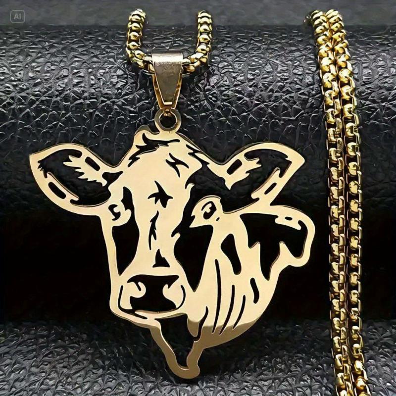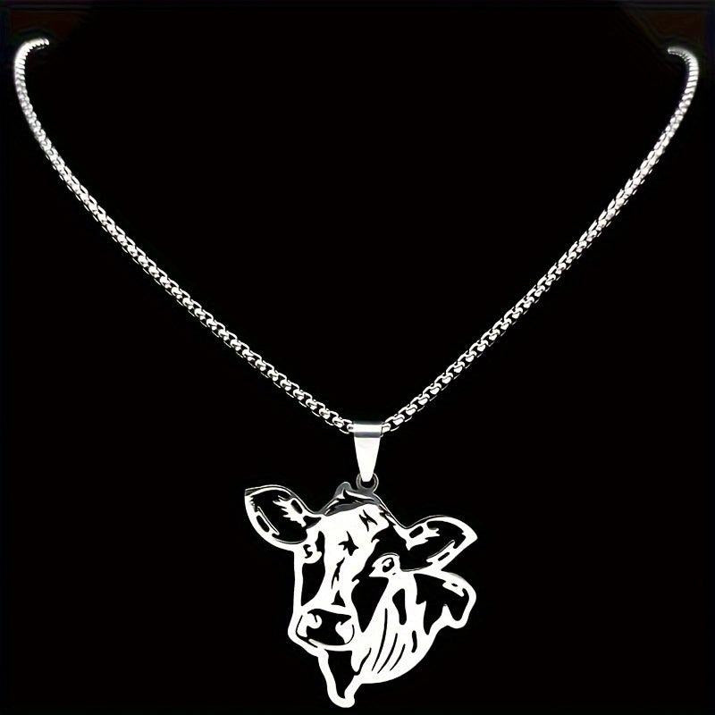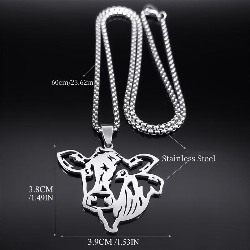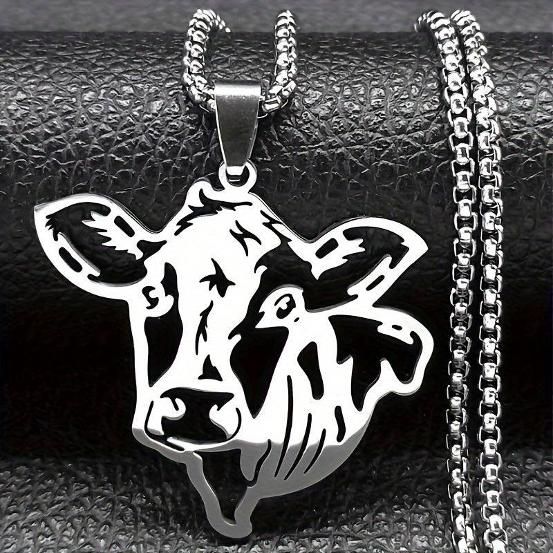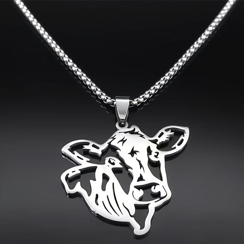 Unleash your edgy side with this unique hollow cow head pendant necklace. Made of stainless steel, this bold accessory features intricate openwork design. Perfect for both men and women who love cow decorations.