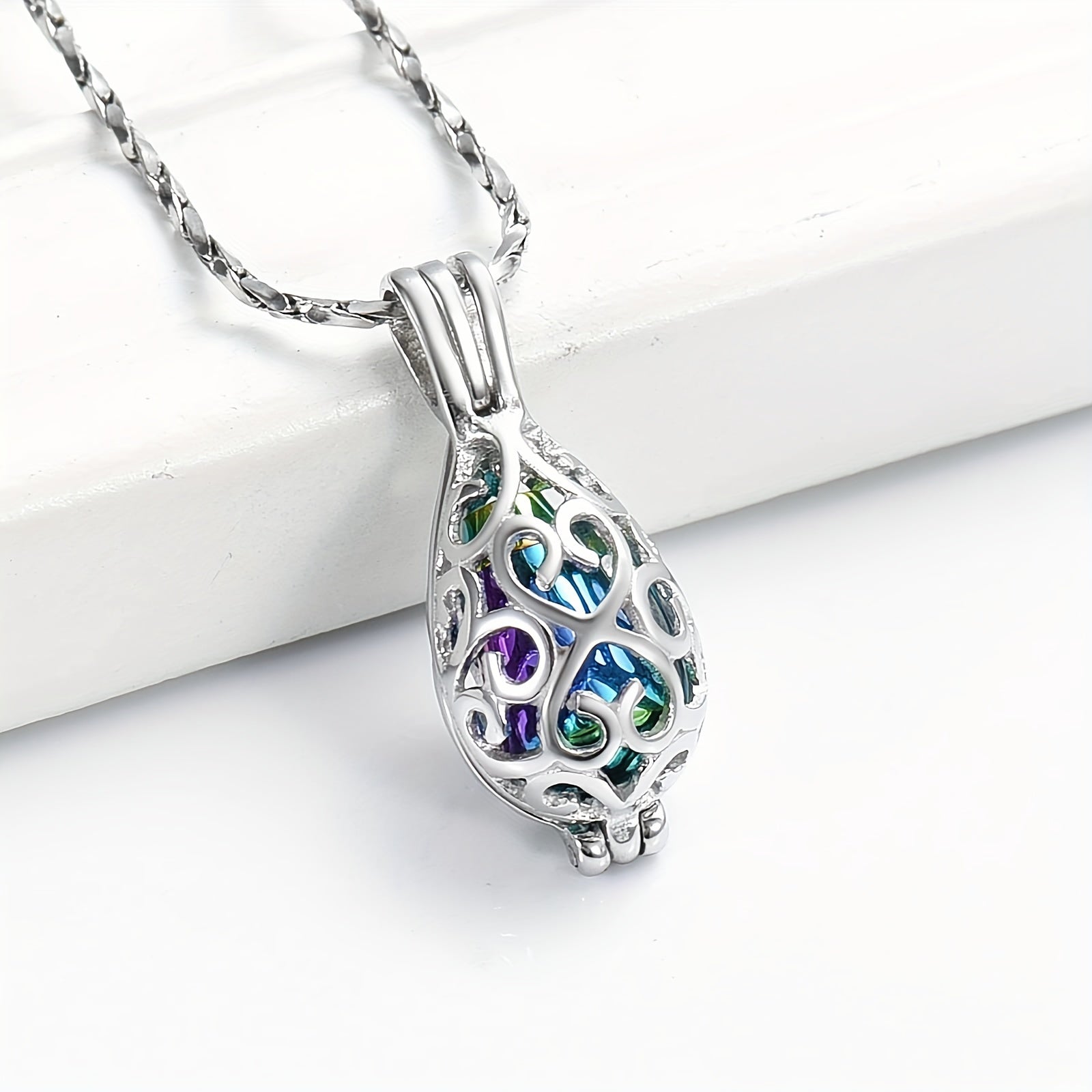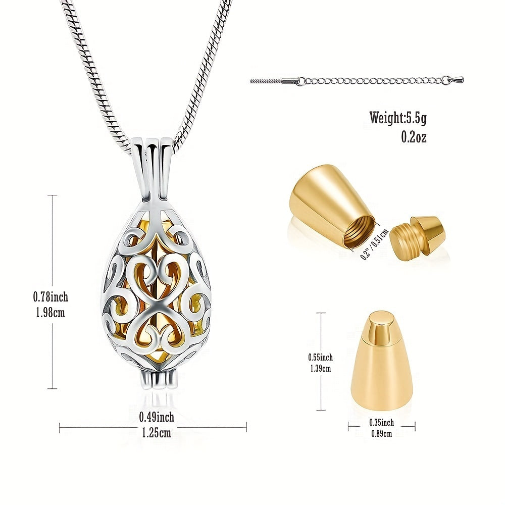 Keep the memory of your loved one close with this customizable cremation urn pendant necklace. The teardrop urn pendant can hold ashes as a keepsake memorial lock.