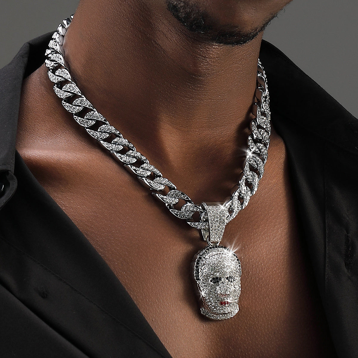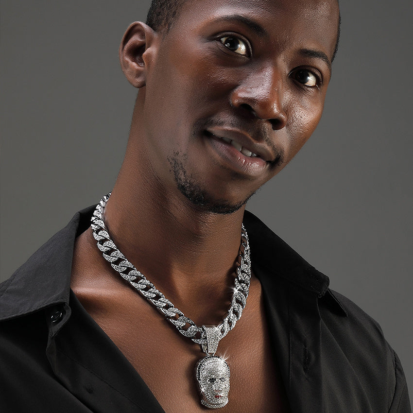 Stylish and unique necklace featuring a human head pendant on a trendy Cuban chain.