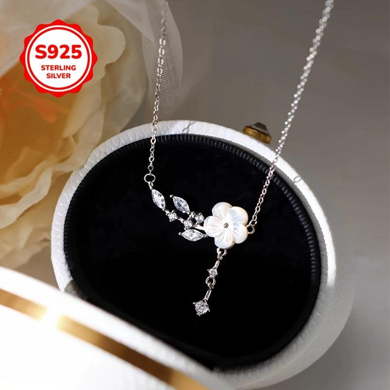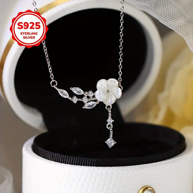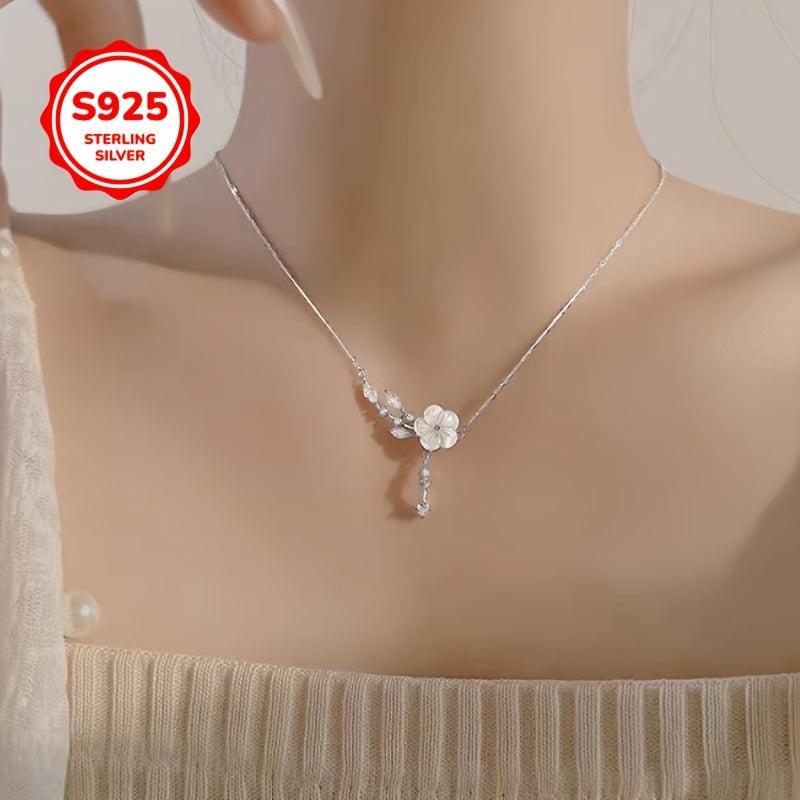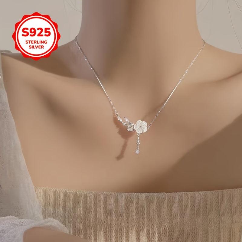 Elegant camellia necklace designed for women, featuring a fresh floral collarbone chain. Great gift choice for mothers. Includes anti-oxidation storage box. Suitable for all seasons.