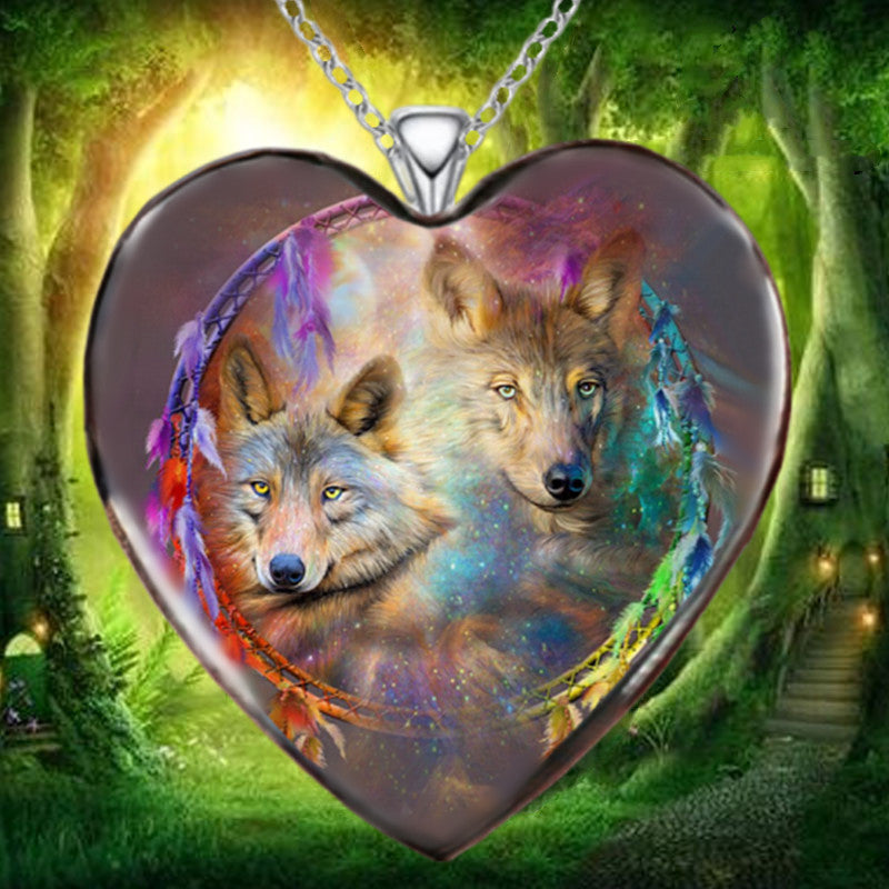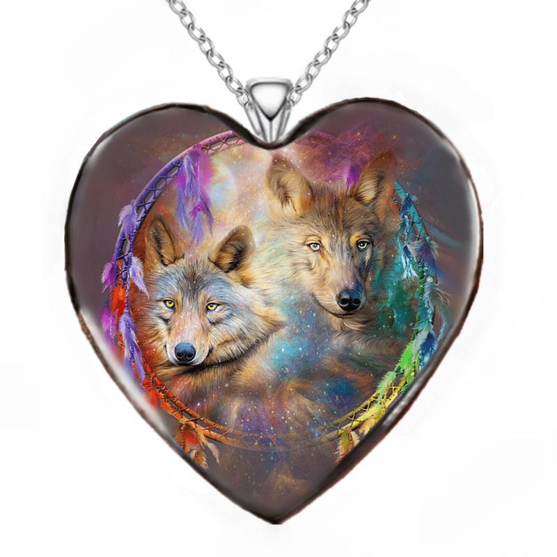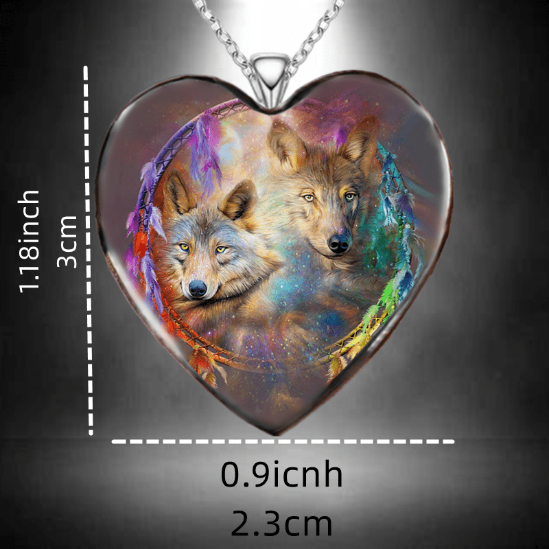 Express your love for hip hop and animals with this painted Indian wolf head heart pendant necklace.