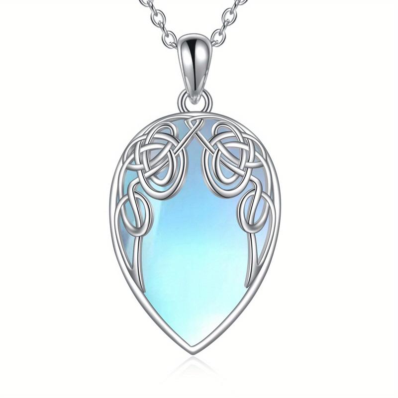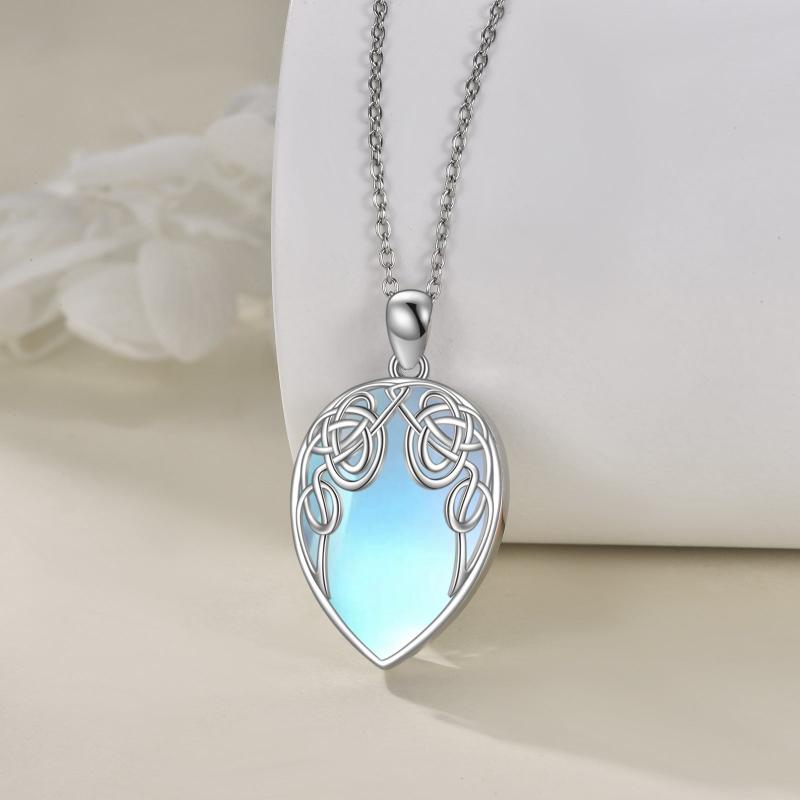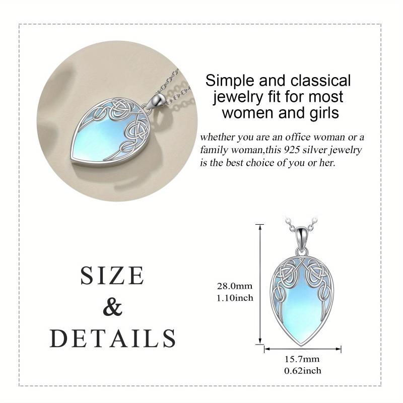 This stunning necklace features a sterling silver Celtic knot teardrop pendant with abalone shell inlay, perfect for women and girls.