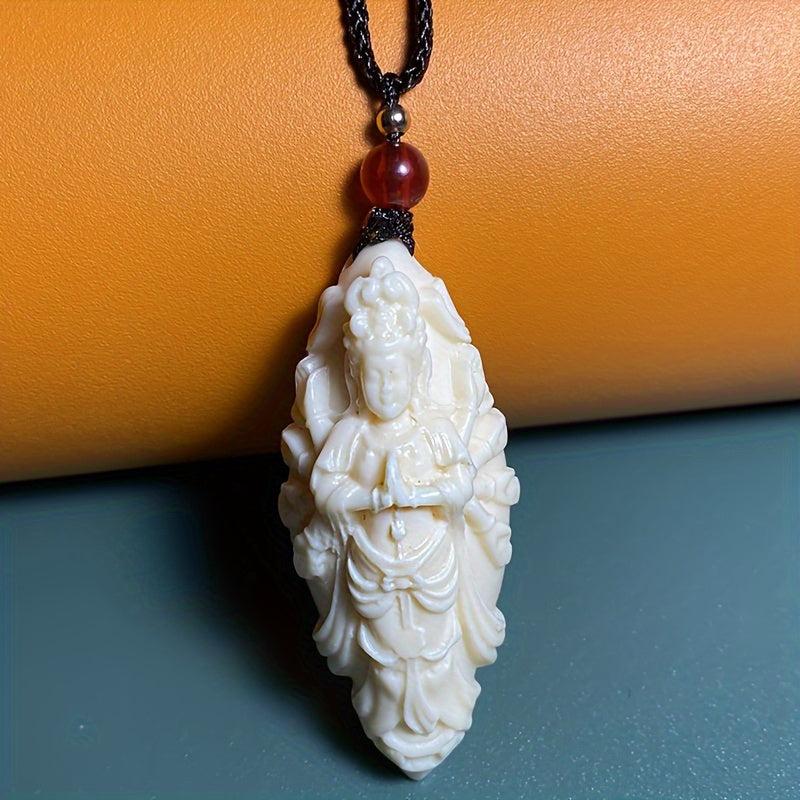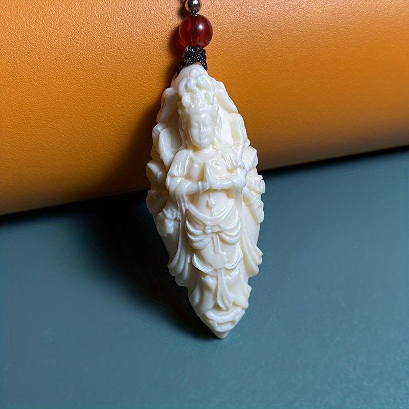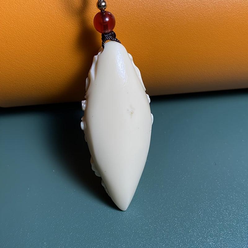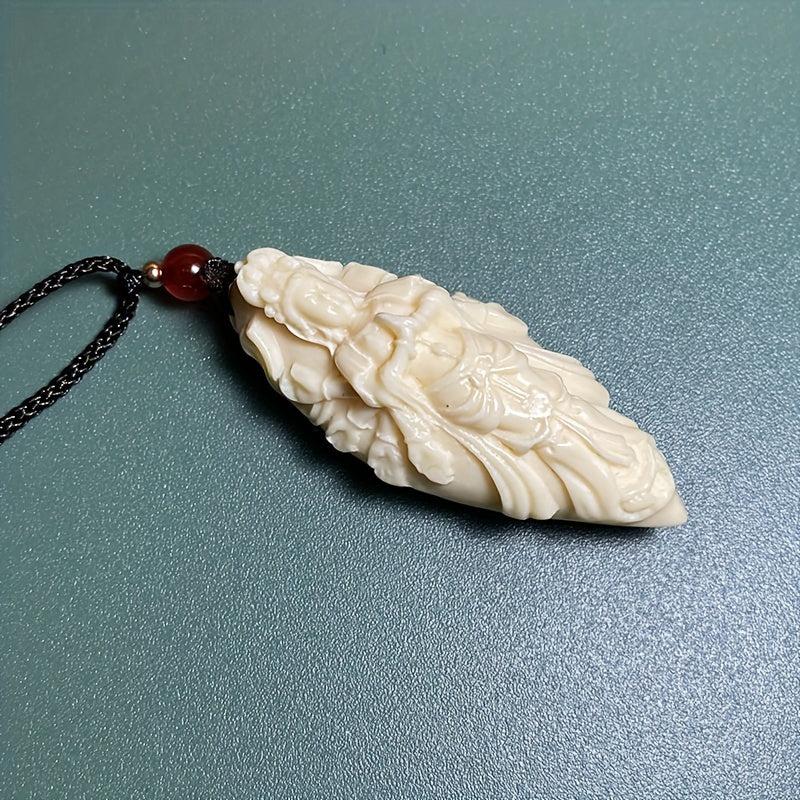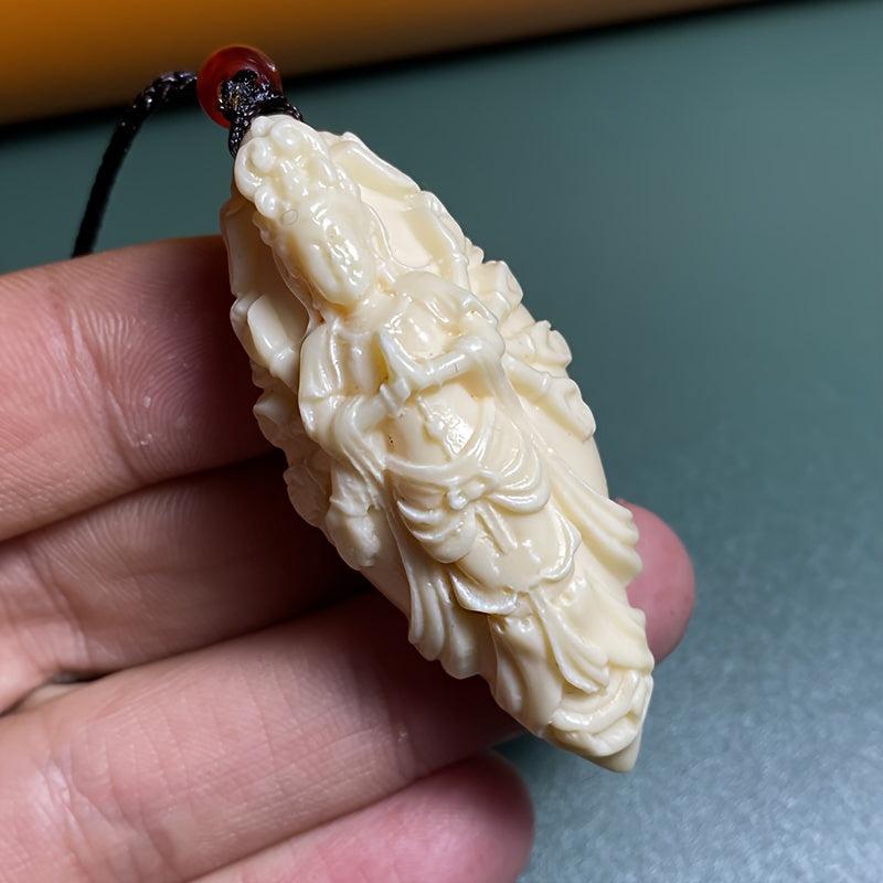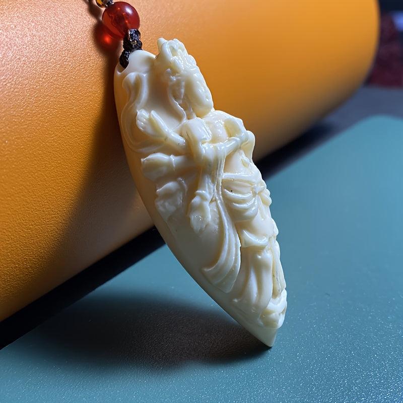 Beautifully carved ivory pendant featuring a three-dimensional design of a character with peace sign. Makes a meaningful gift.
