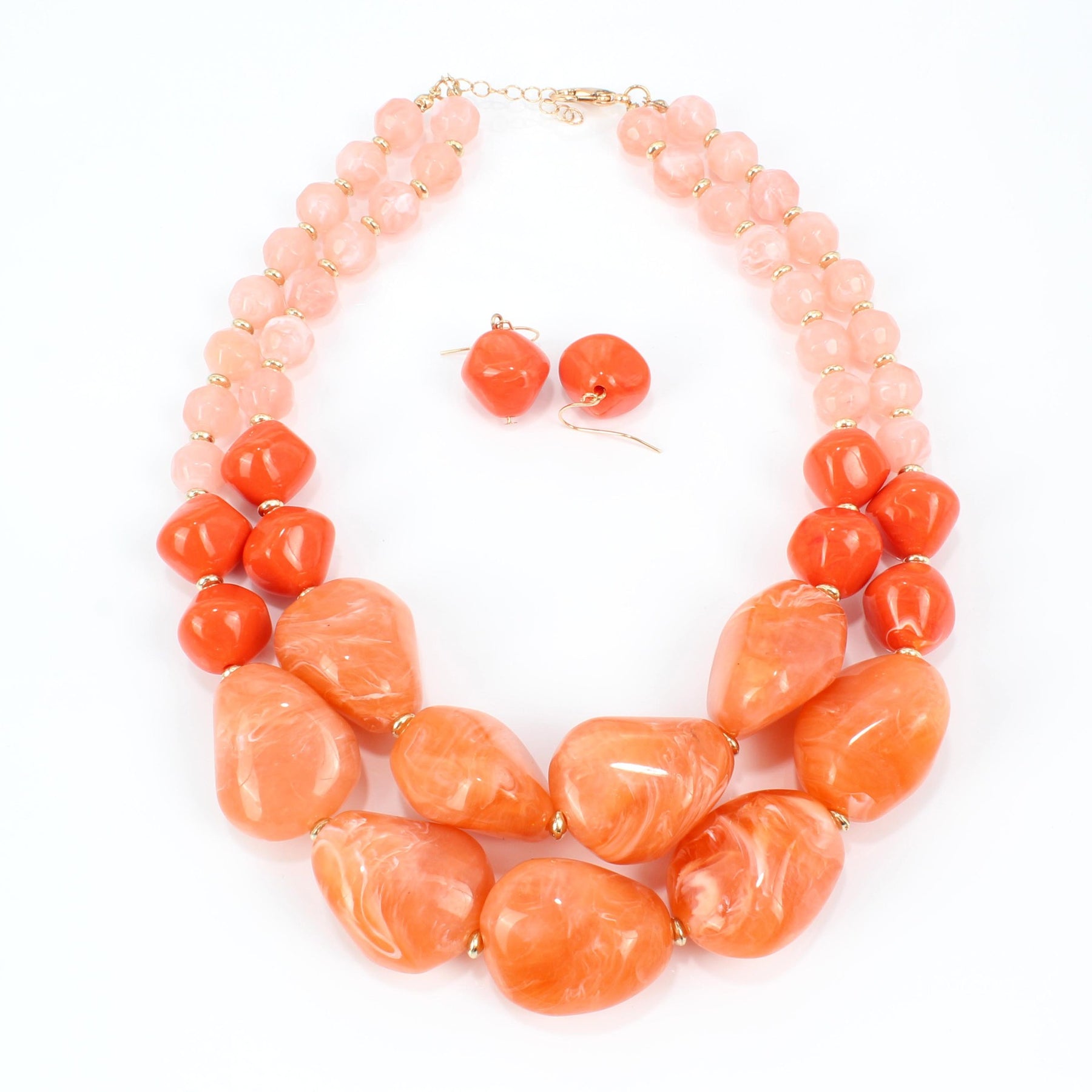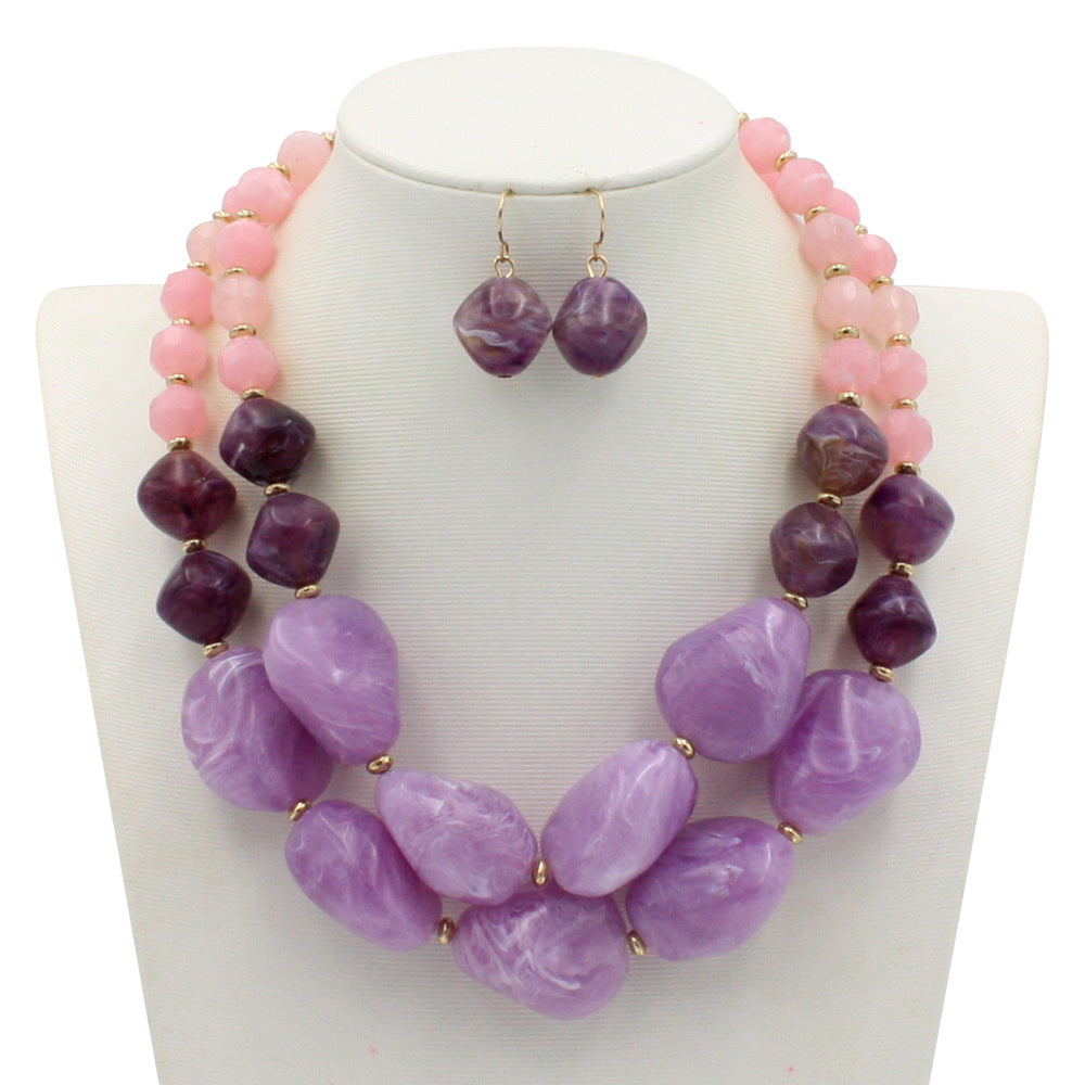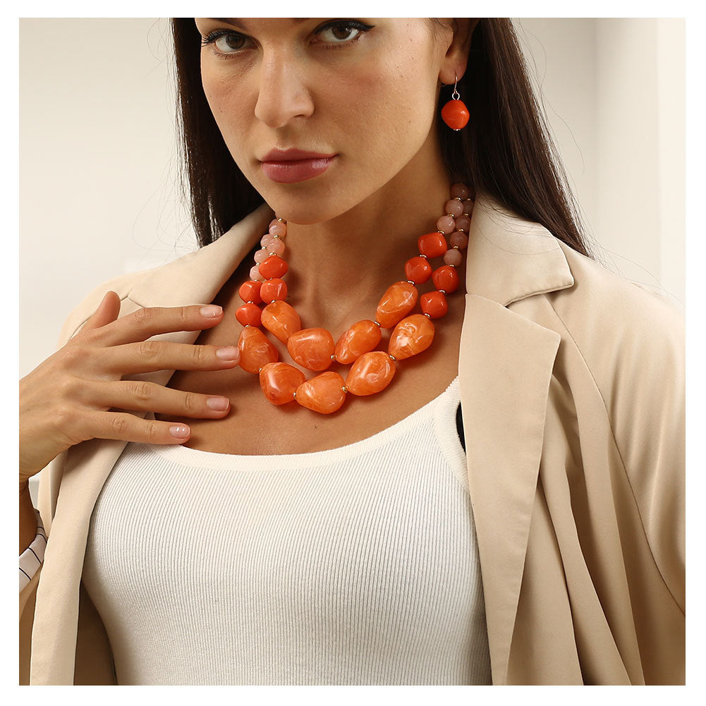 Complete your look with this stunning jewelry set featuring a double beaded necklace in a stylish jelly color and a matching pair of earrings.