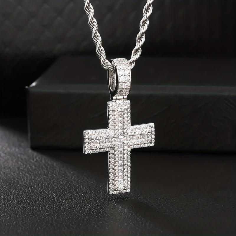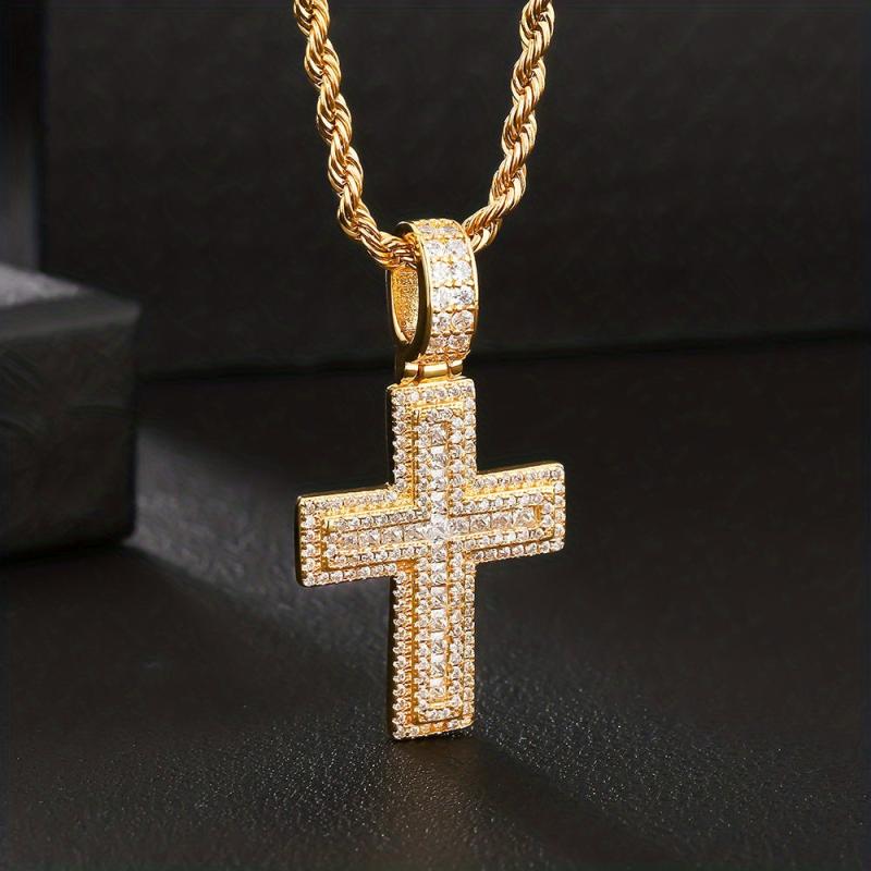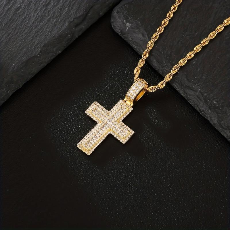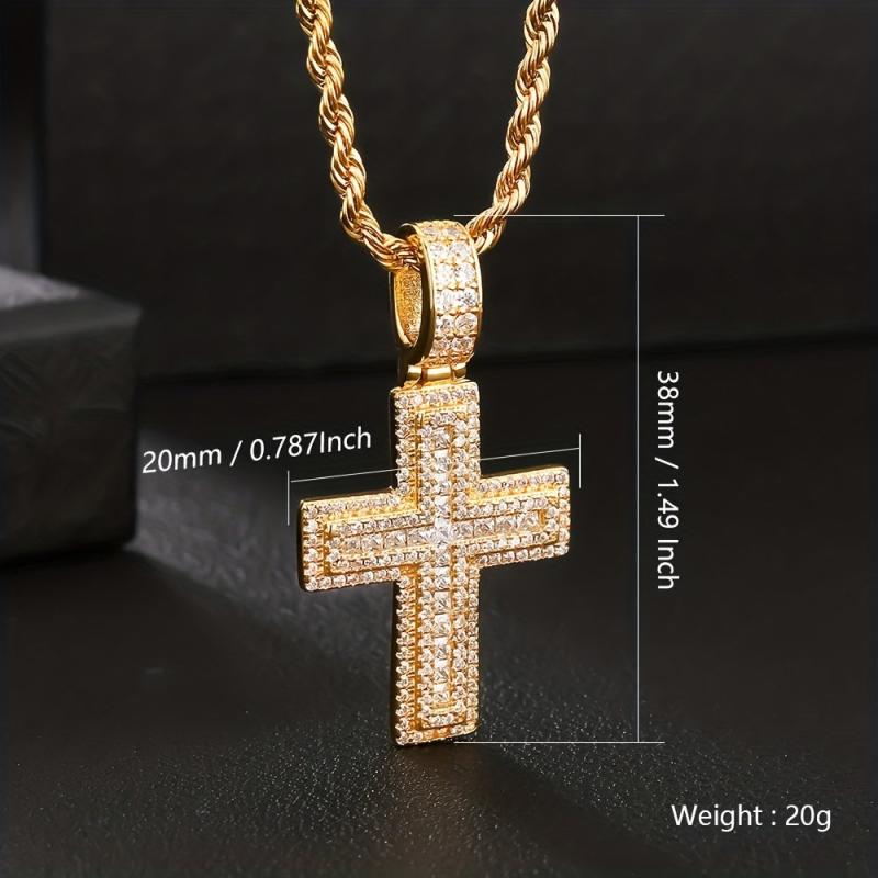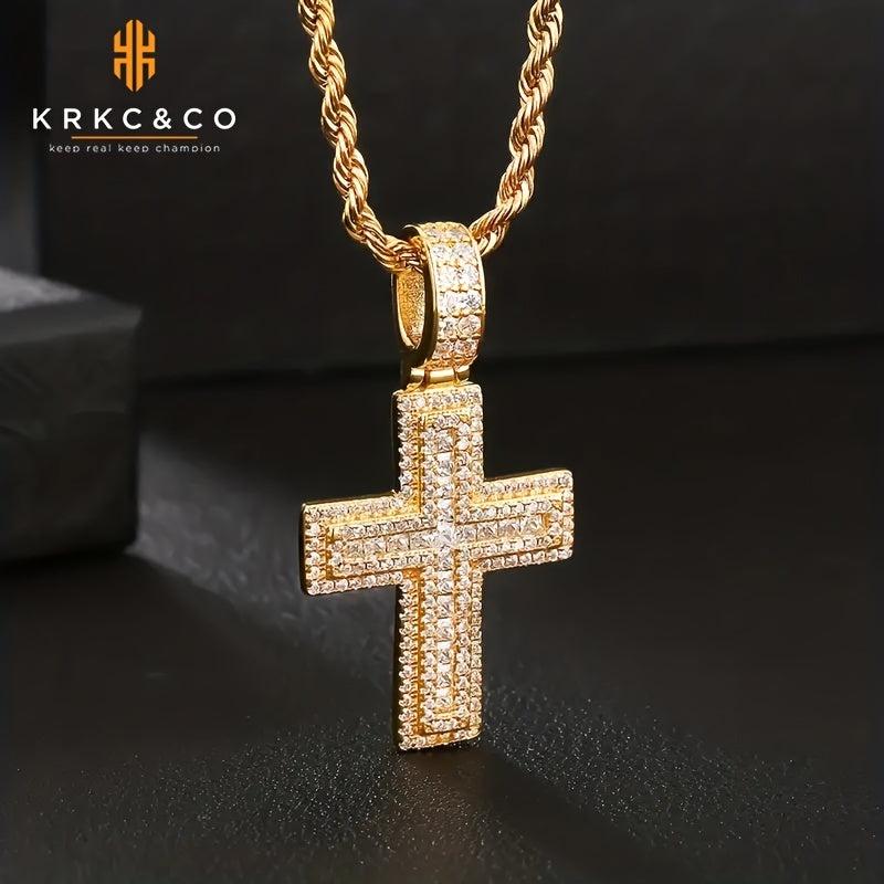 This KRKC&CO Cross Necklace features high-quality zirconium for a stylish hip hop look. Ideal for both men and women, this necklace adds a touch of edgy flair to any outfit.