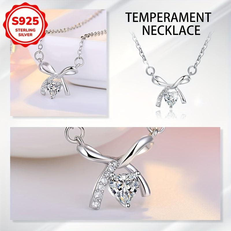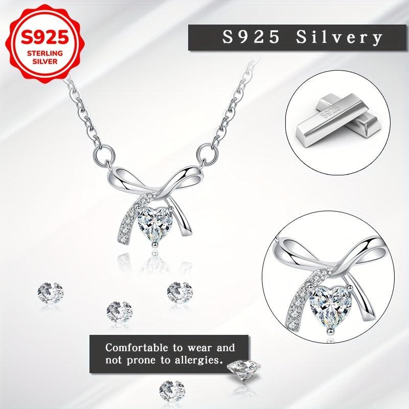 Elegant pendant necklace featuring a refined butterfly heart design with synthetic zirconia stones. Made of 925 sterling silver with a weight of 5g. Perfect for daily wear, dates, vacations, parties, and holidays.
