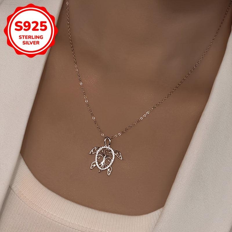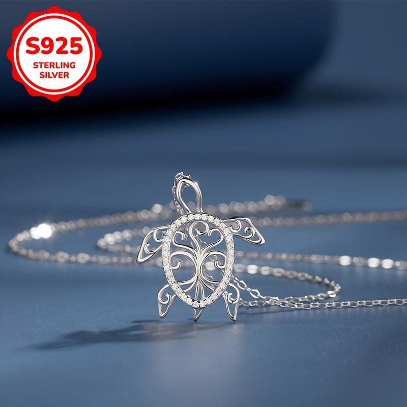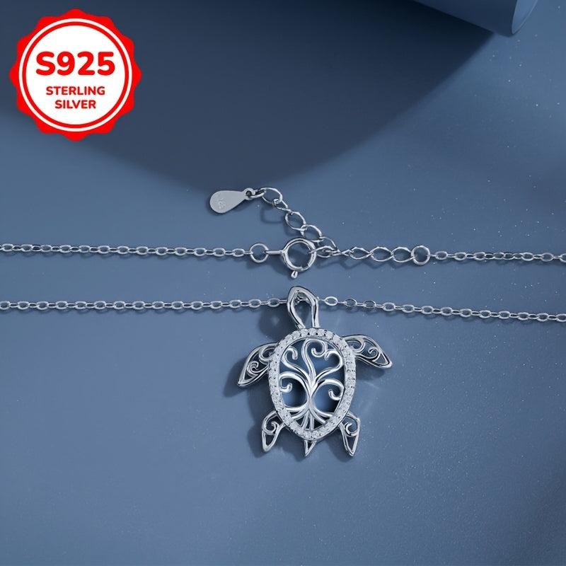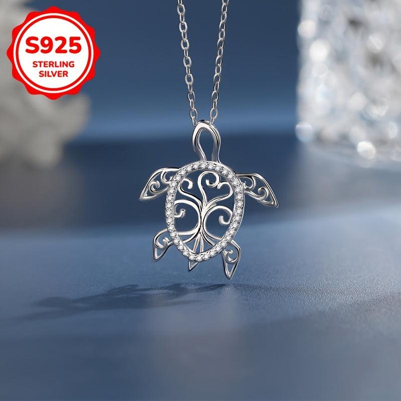This elegant pendant necklace features a sea turtle and tree of life design with zirconia inlay, perfect for parties, vacations, and daily wear. Great as a gift for any occasion.