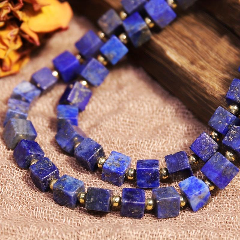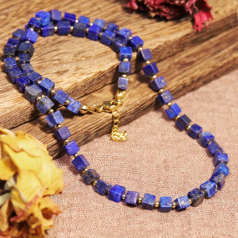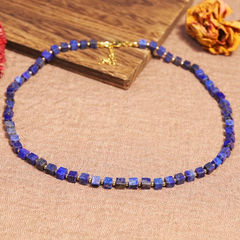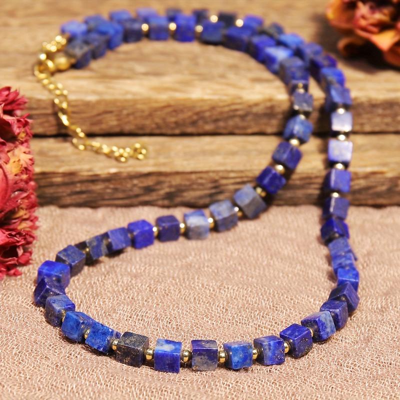 Elevate your daily outfits with this handcrafted Lapis Lazuli beaded choker necklace featuring a square pendant and golden tone accents. Ideal for daily wear and a perfect December birthstone jewelry piece.