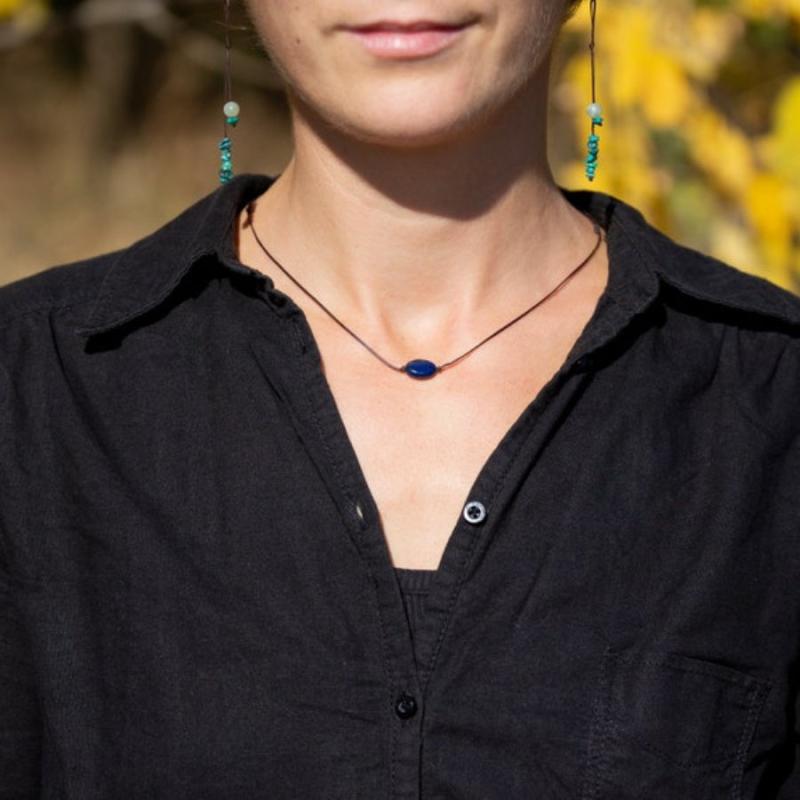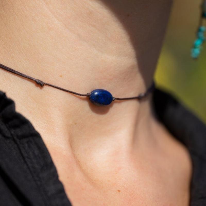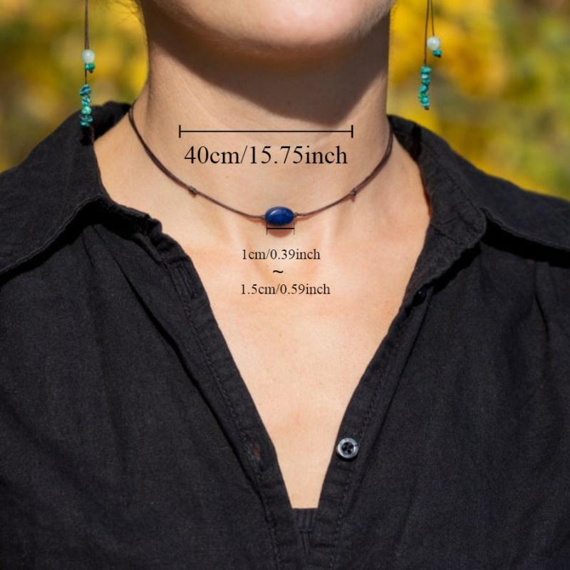Enhance your casual attire with this stunning Lapis Lazuli choker featuring natural stone beads. The vintage style design adds a touch of elegance to your look.