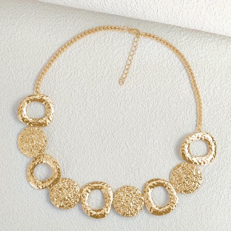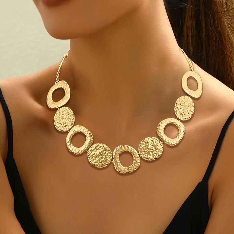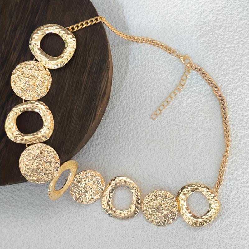 This elegant necklace features a layered design with size hollow circle pendants in a golden tone. Perfect for parties, vacations, and casual attire, this minimalist jewelry piece adds charm to any outfit.