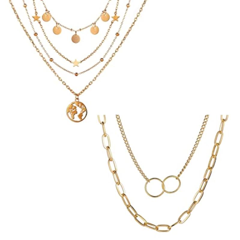 Elevate your style with this chic layered necklace set featuring a trendy layered design. The set includes two necklaces plated with a high-quality gold finish.
