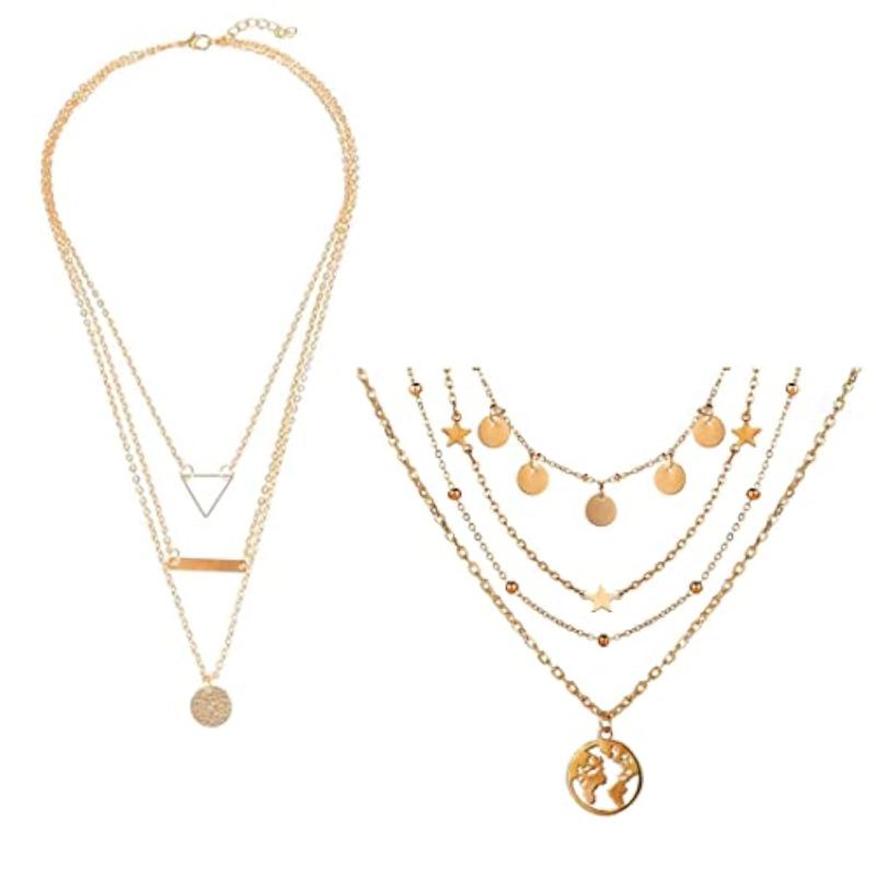 Elevate your style with this set of 2 layered necklaces featuring a stunning gold-plated design. Perfect for adding a touch of glamour to any outfit.