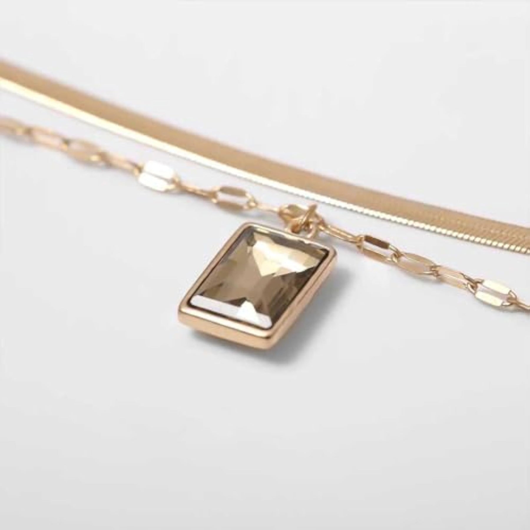 This stylish layered necklace features a combination of coin and crystal pendants along with a pearl pendant. The dainty chain adds a touch of elegance, making it a perfect accessory for women.