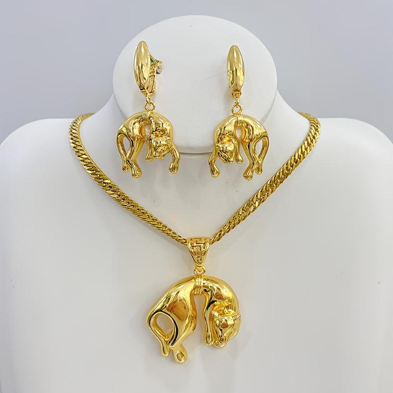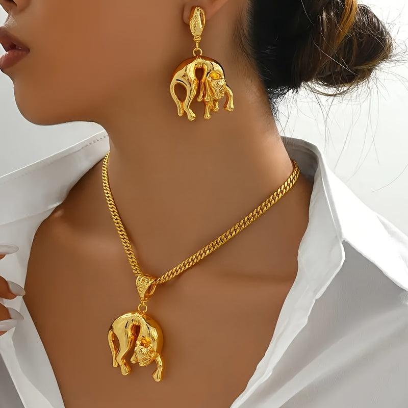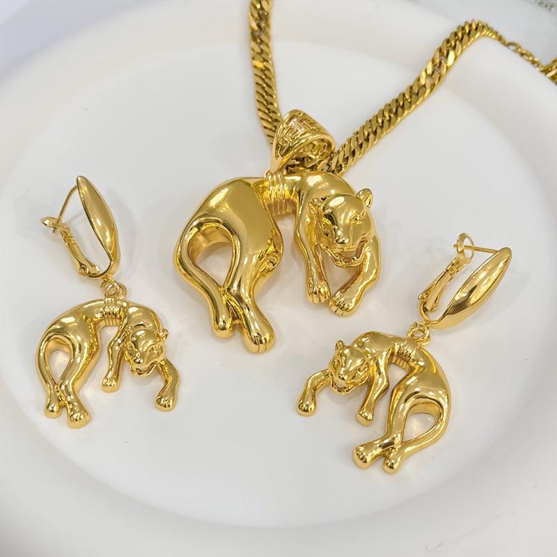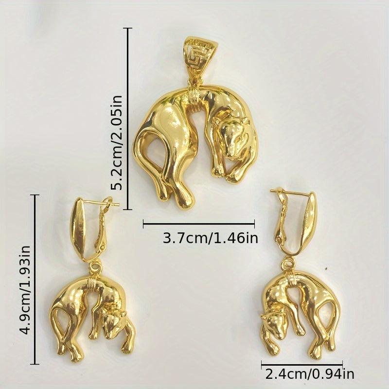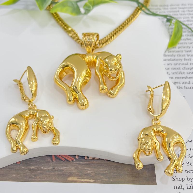 Complete your look with this stylish leopard earrings and pendant necklace set. Perfect for any occasion!