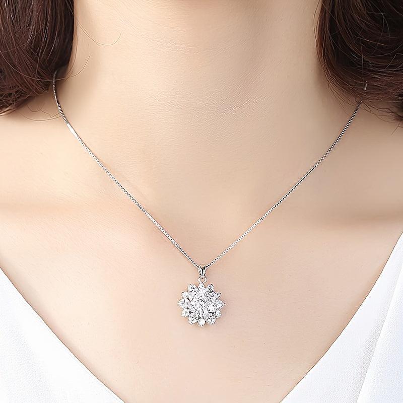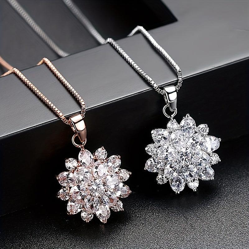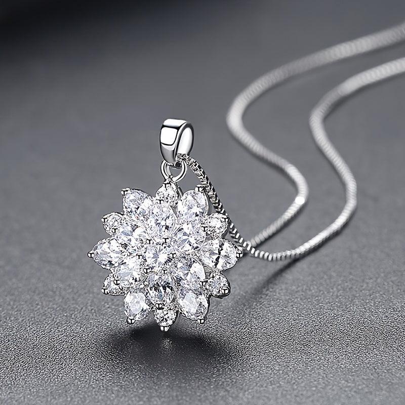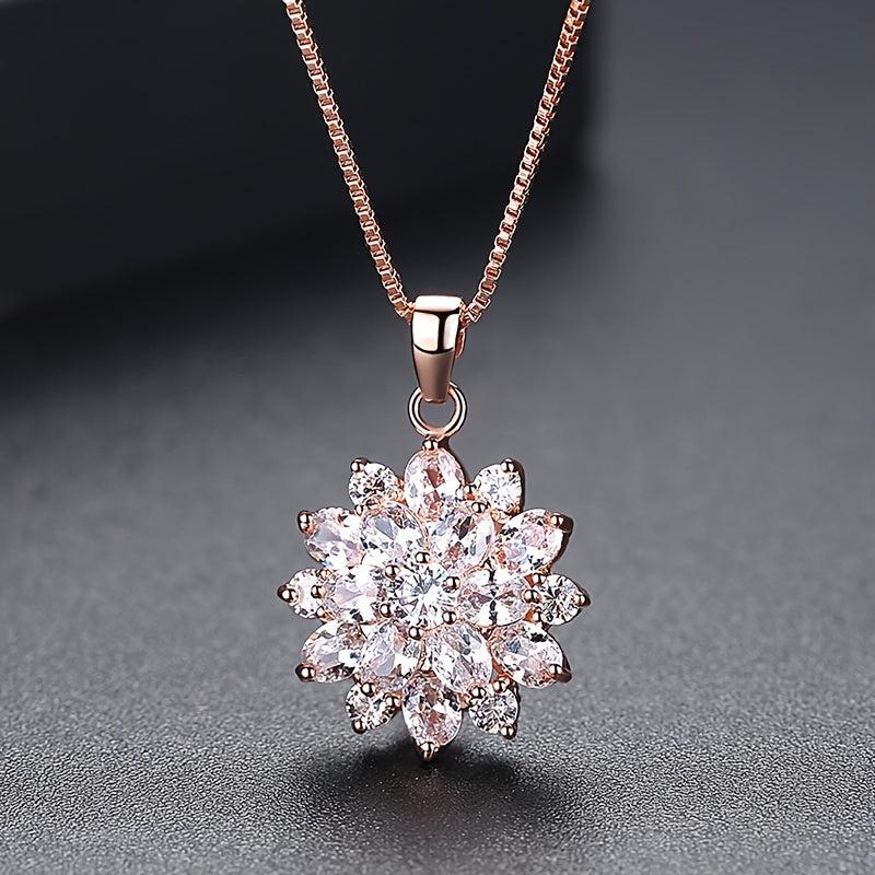 Beautifully designed necklace featuring a synthetic AAA zirconia flower pendant. Perfect for everyday wear or special occasions. Great gift idea year round.