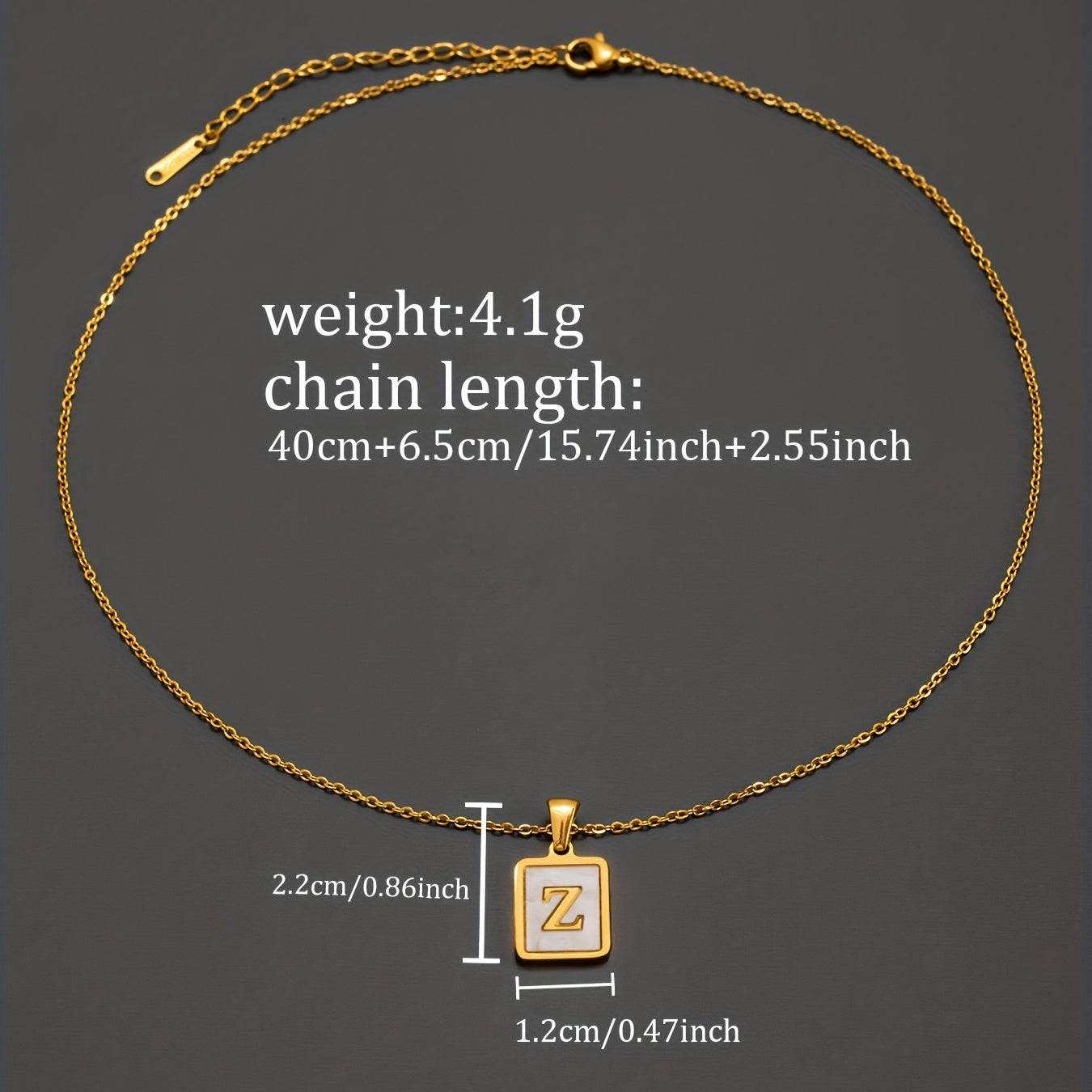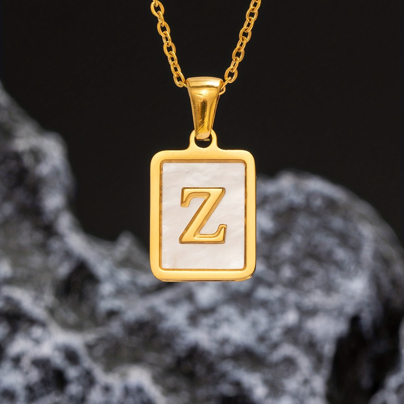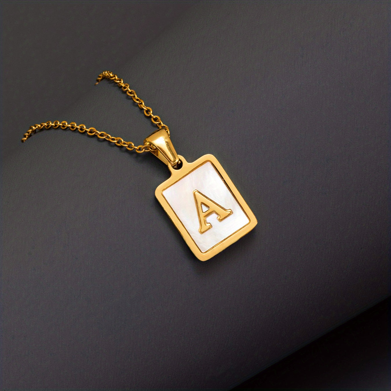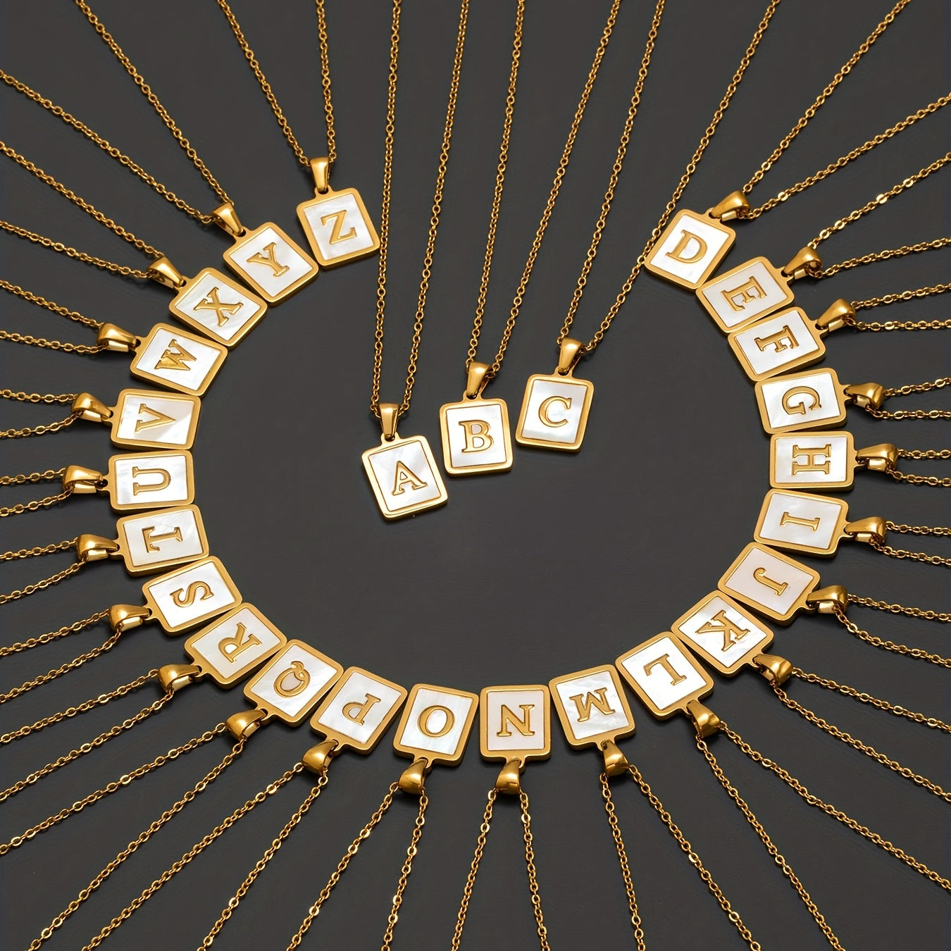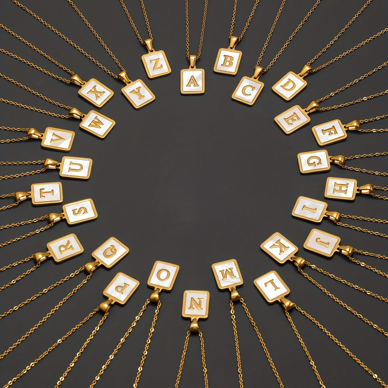 This versatile necklace features a rectangular shell inlaid with 26 English letters. It is electroplated and adjustable for a trendy look.
