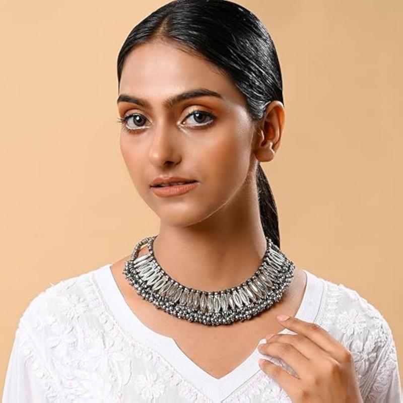 Stay on-trend with this stylish metallic hanging choker necklace that is anti-tarnish and lightweight, perfect for everyday wear.