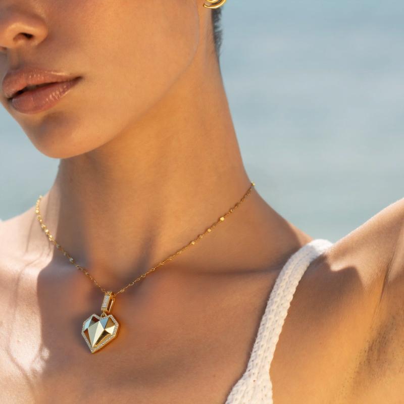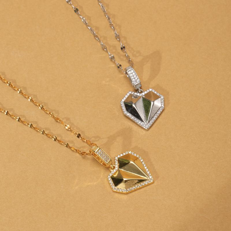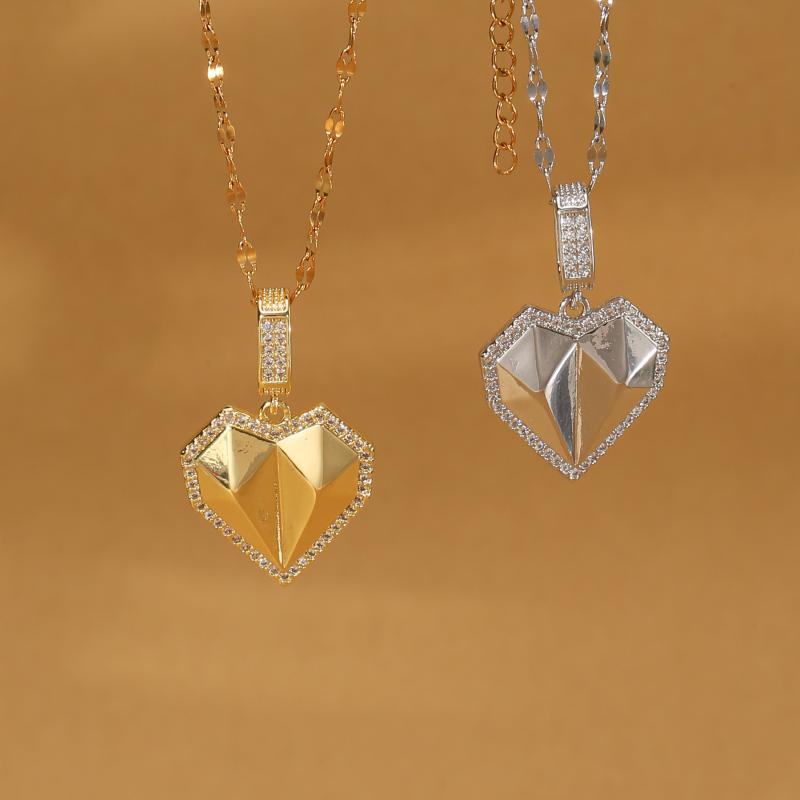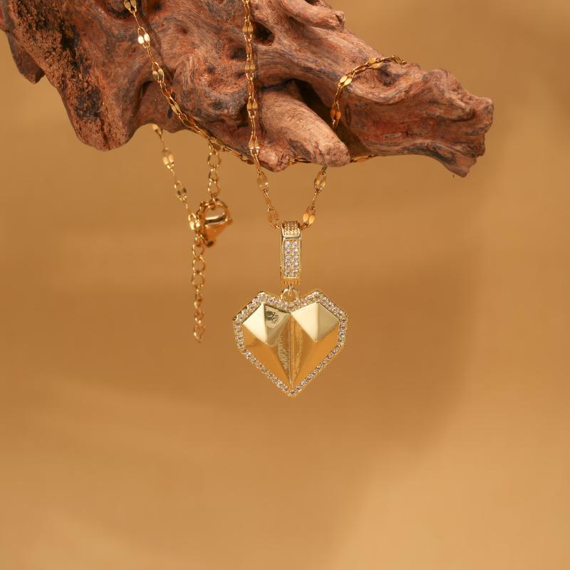 This heart pendant necklace is made of hypoallergenic stainless steel in a beautiful blend of golden and silver tones.