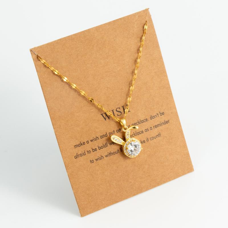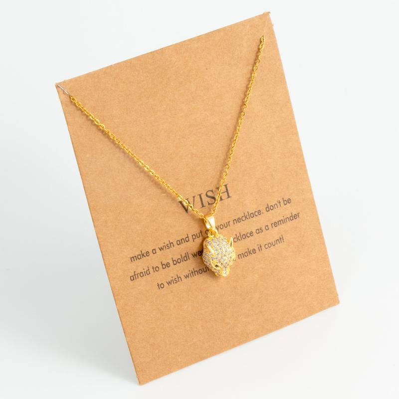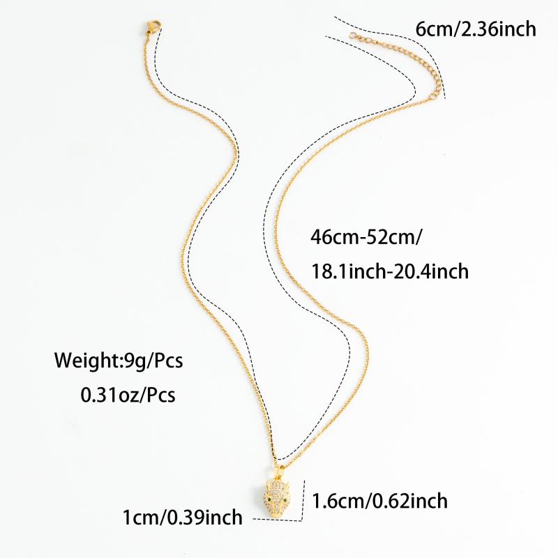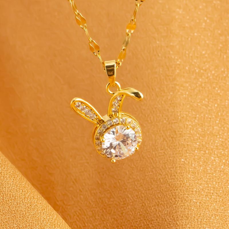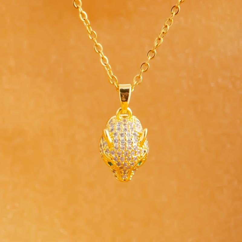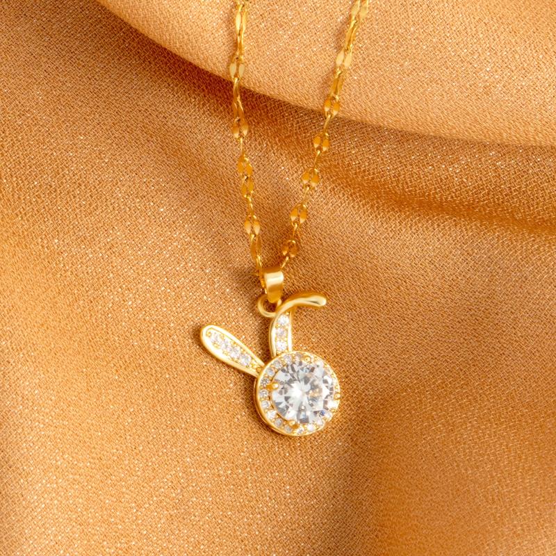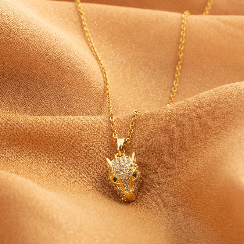 This necklace features a leopard head and rabbit ear pendant design made of stainless steel.