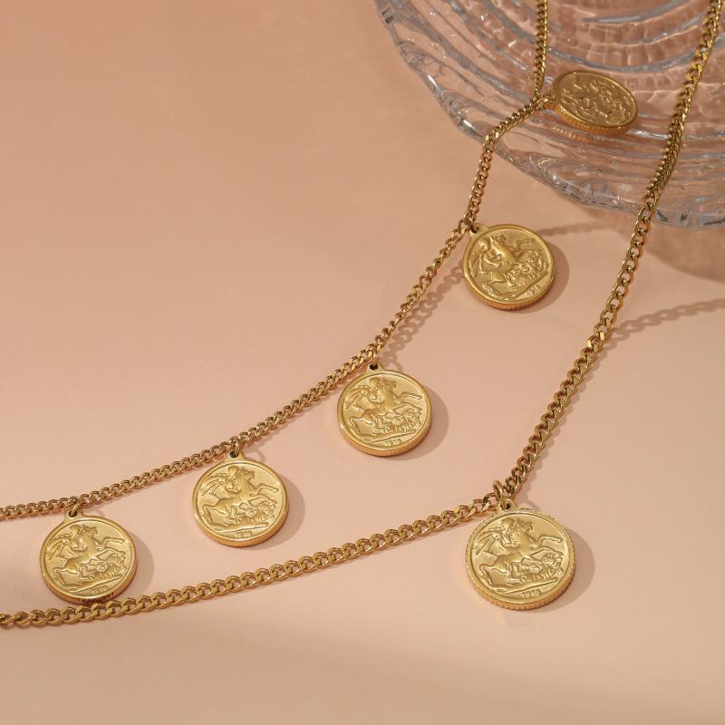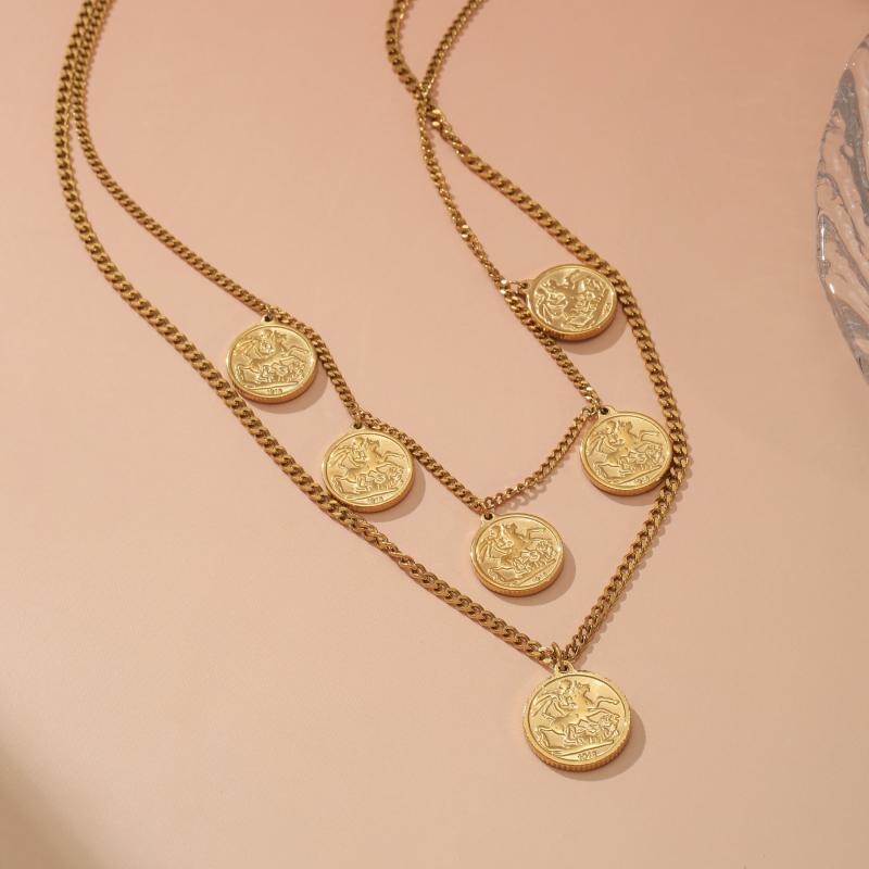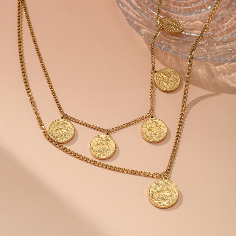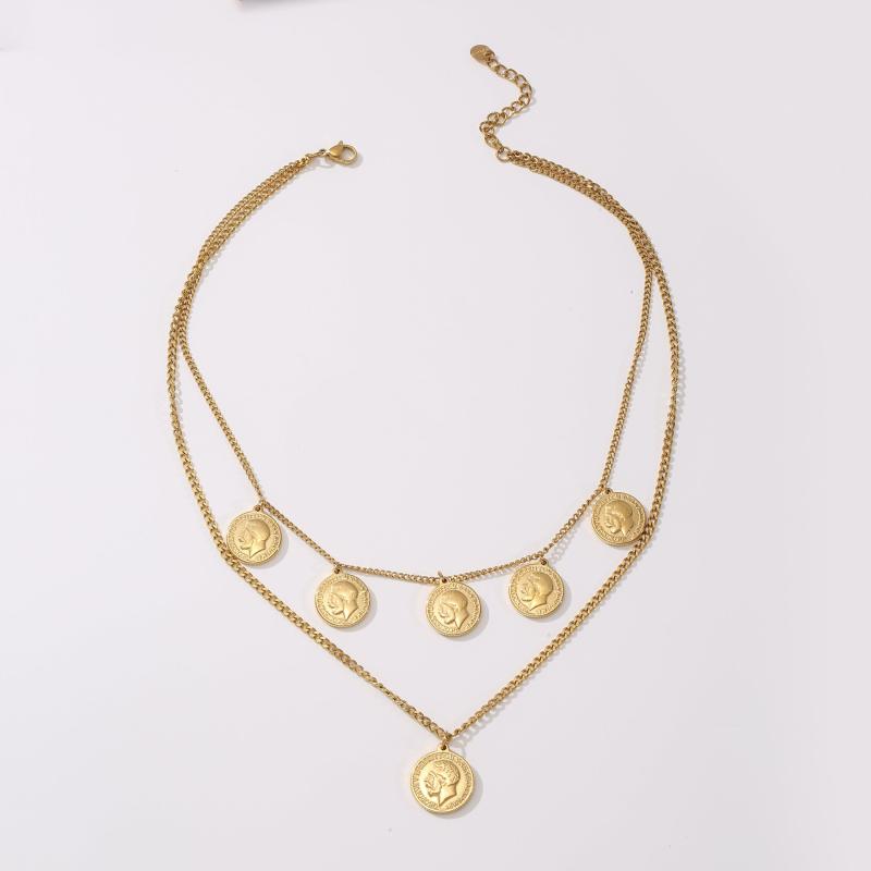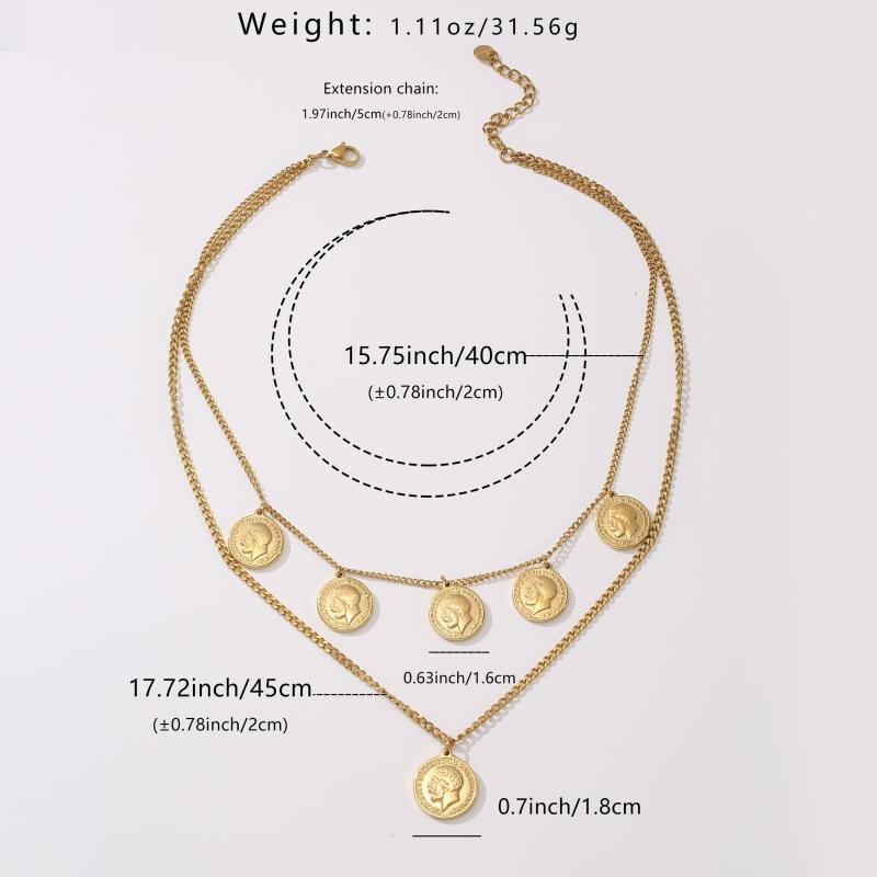 This LNCHRAN double-layer necklace is perfect for adding a touch of vintage charm to your outfit. It is made of hypoallergenic coated stainless steel with synthetic stones in a beautiful golden tone.