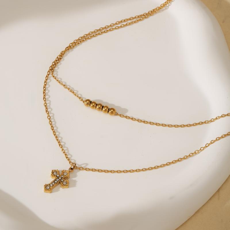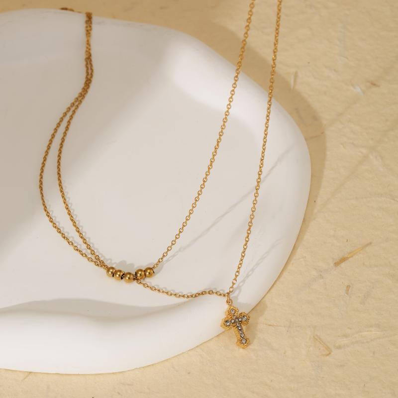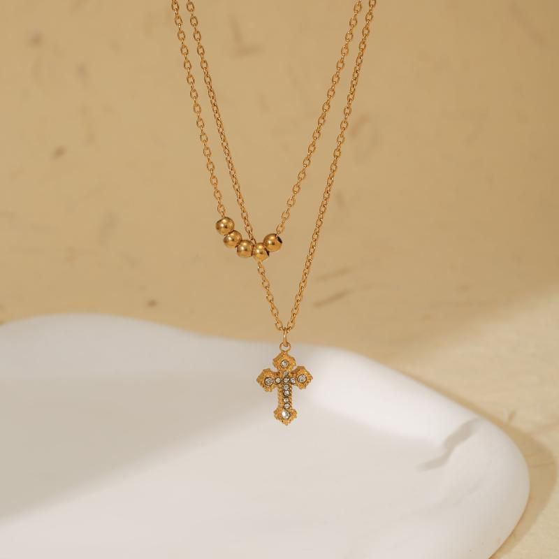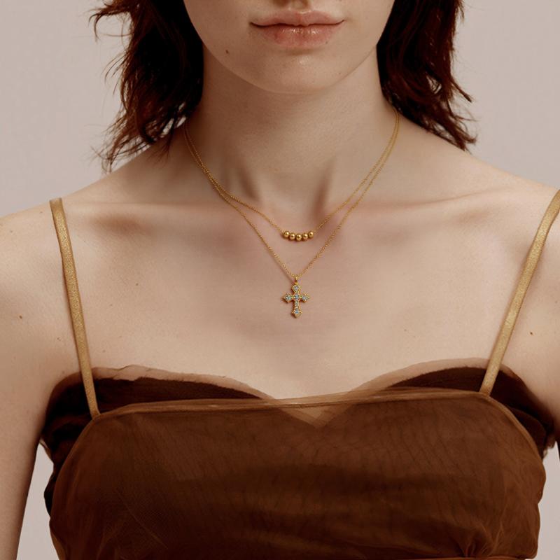 This cross pendant necklace is made of high-quality stainless steel with synthetic stone. It is a stylish and elegant piece of jewelry suitable for everyday wear or special occasions.