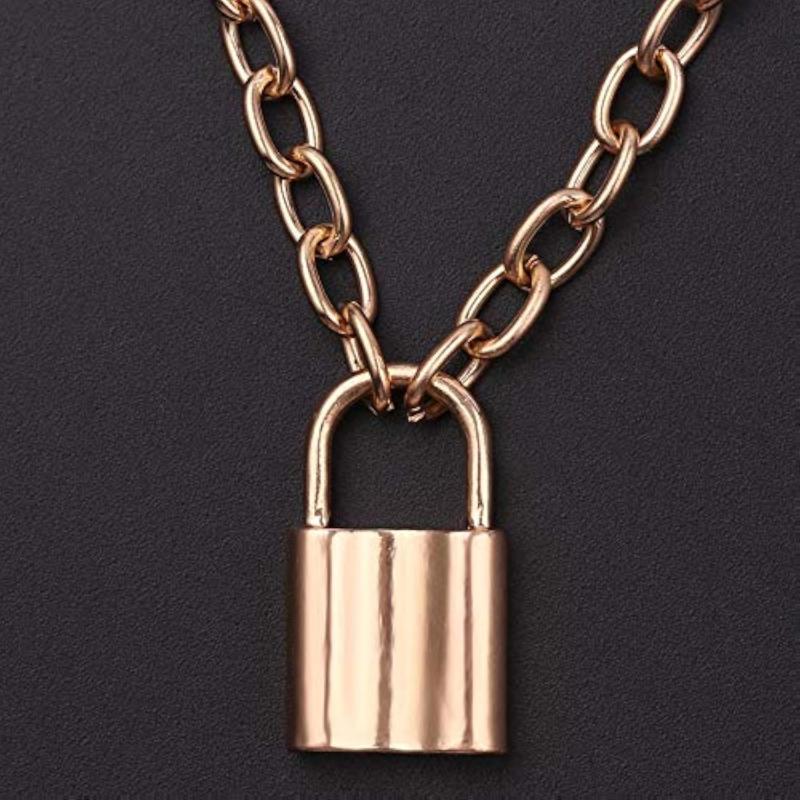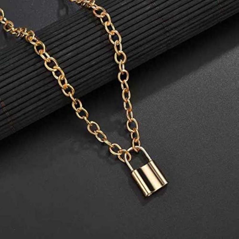 This stylish lock pendant necklace is crafted from silver tone stainless steel, perfect for adding a touch of edge to any outfit.