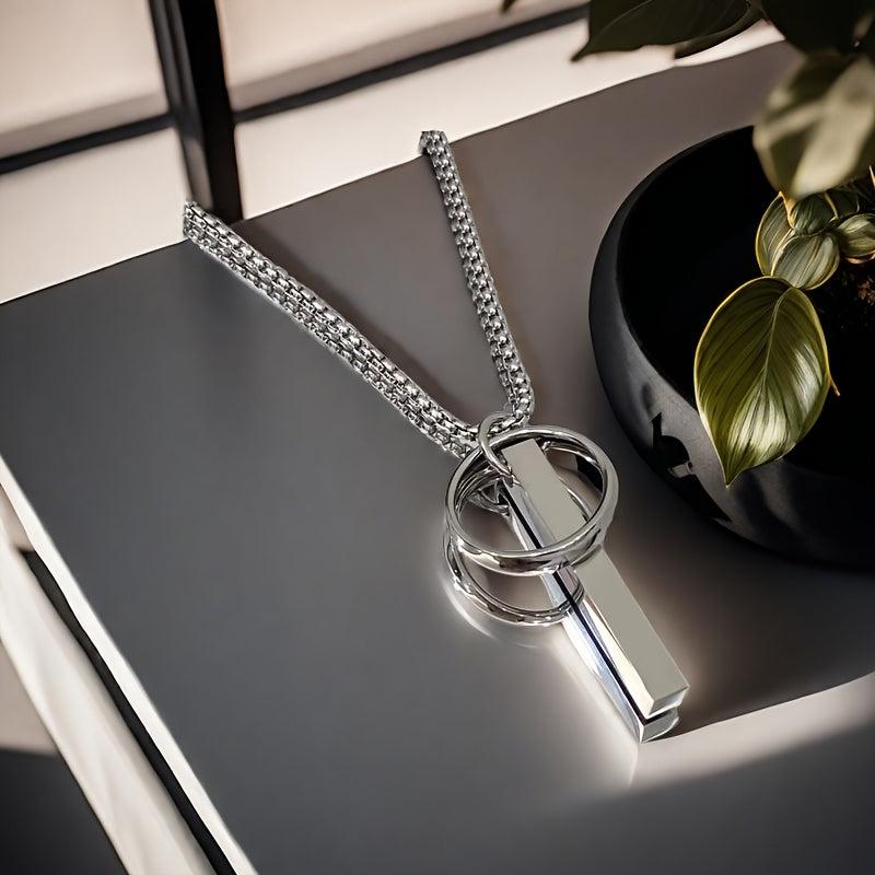 This minimalist pendant necklace is made of durable titanium 316L stainless steel. It features a unique light design that is unisex and suitable for any occasion. Give it as a gift for birthdays or special occasions.