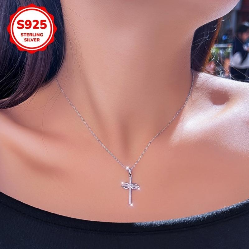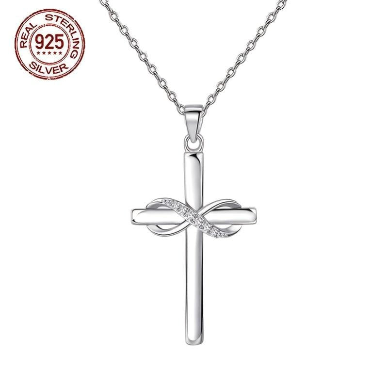 This beautiful necklace features a classic cross design with an infinity symbol pendant. Made of hypoallergenic S925 silver and adorned with synthetic zirconia, it is a timeless piece of faith prayer jewelry.