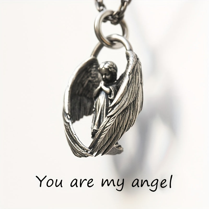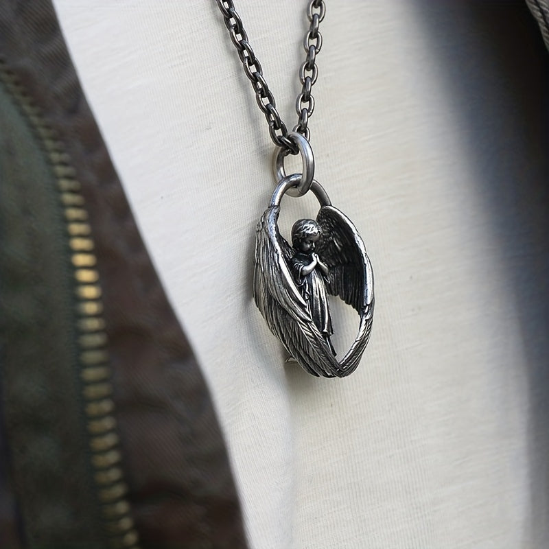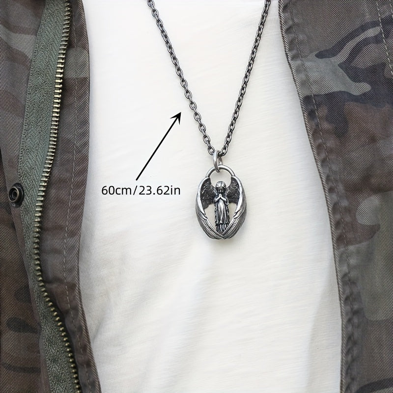 Elegant angel pendant necklace for men with a touch of luck and blessings. Perfect for hip hop and punk styles.