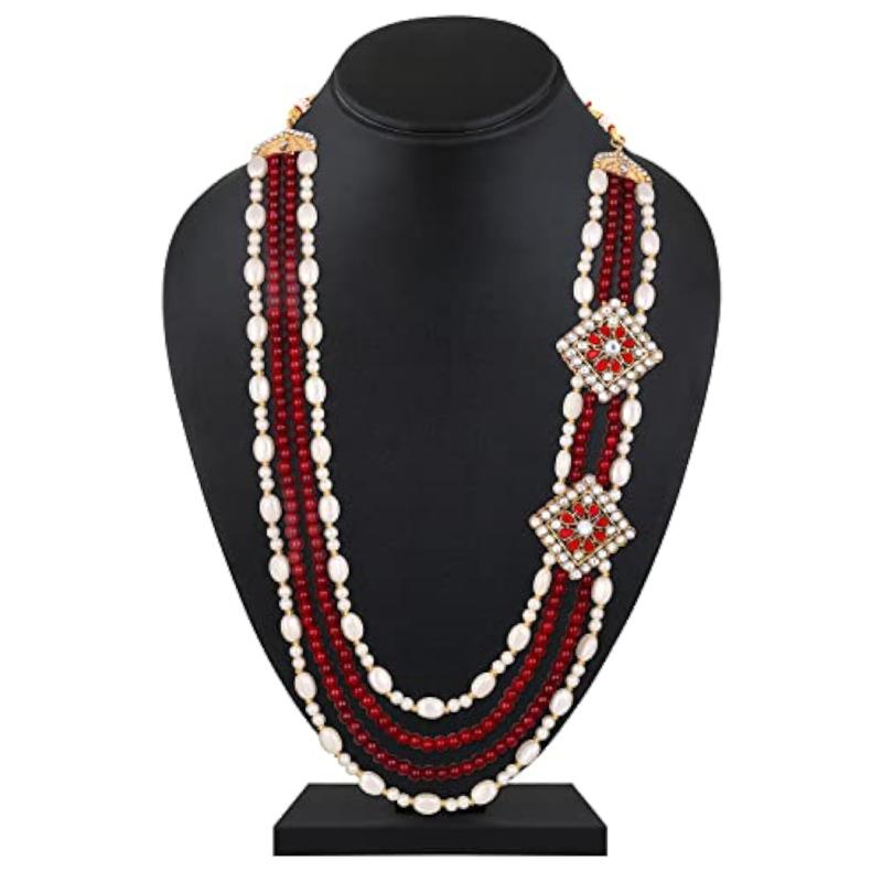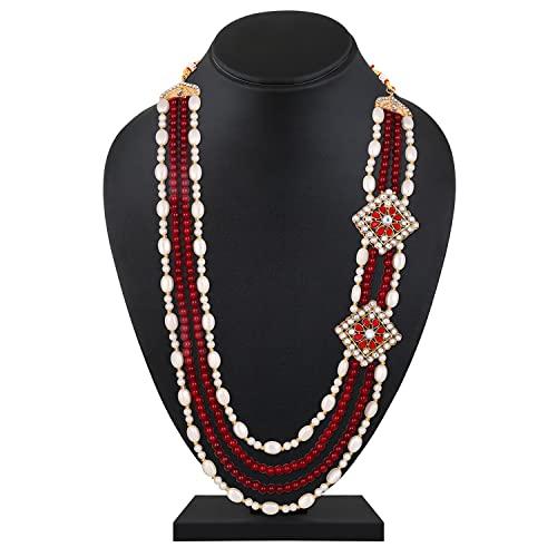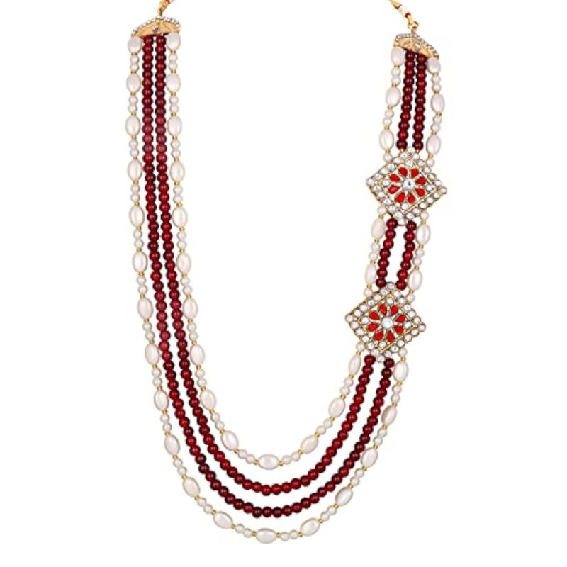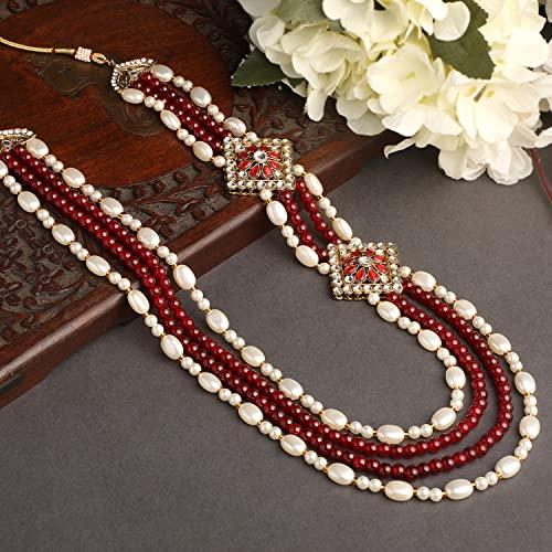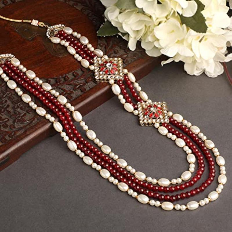 Elegant maroon and glass beads base dulha moti mala haar necklace for a traditional look.