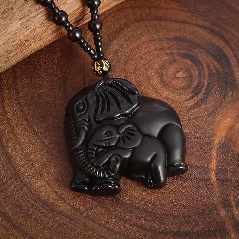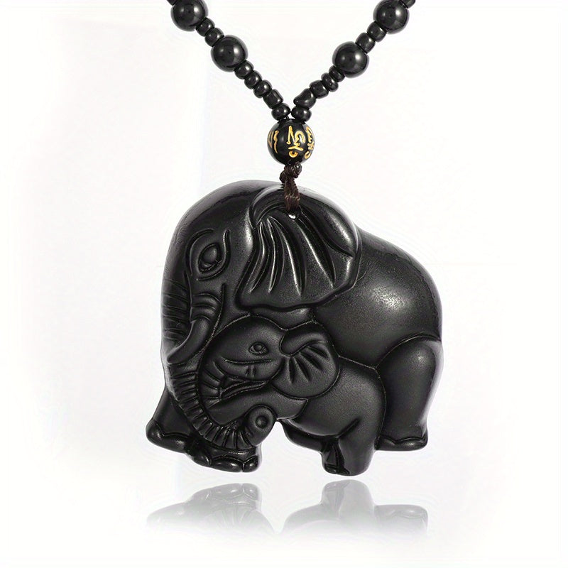 This pendant necklace features a natural stone carved elephant, symbolizing luck and protection. A stylish amulet jewelry for men.