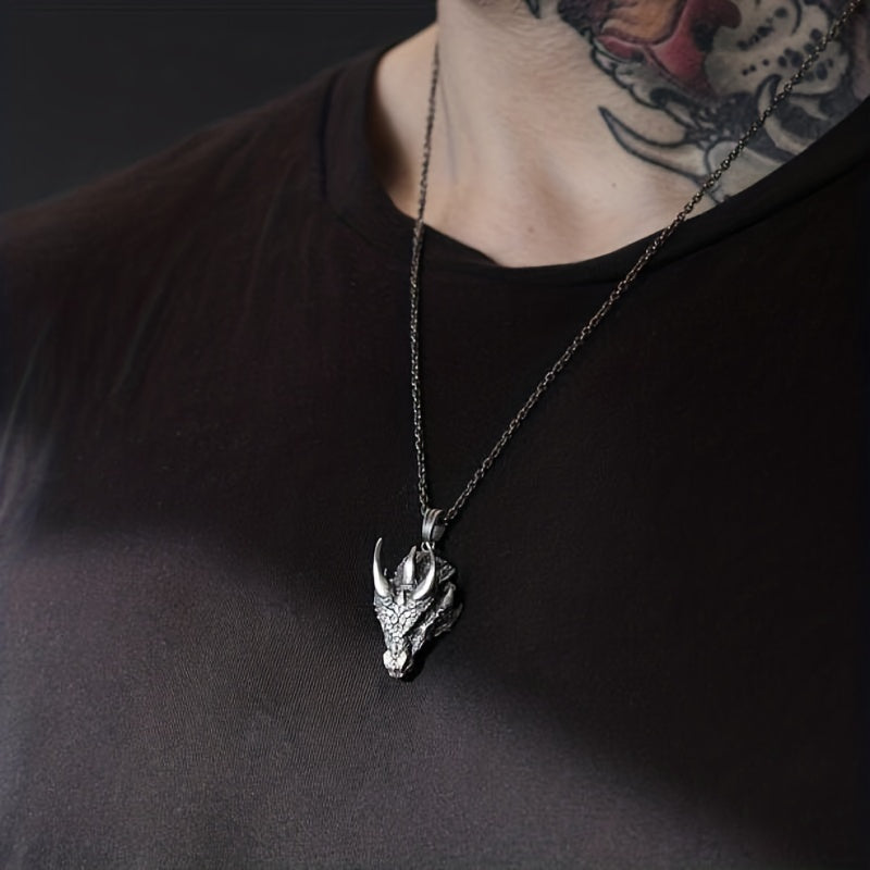 This vintage dragon head pendant necklace is perfect for hip hop enthusiasts and rock lovers. It's a stylish amulet jewelry piece that adds character to any outfit.