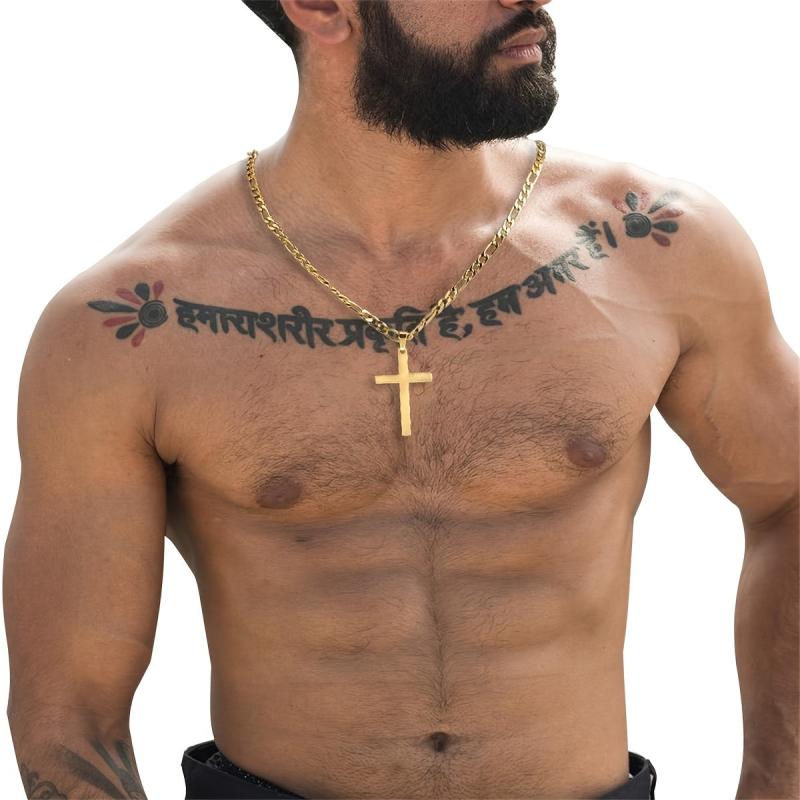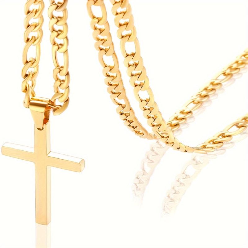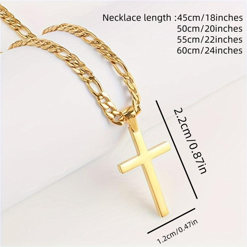 Elegant and stylish Men's 18K plated cross necklace with a chain. This minimalist jewelry piece is a perfect gift for any occasion. Made of high-quality iron and copper materials.