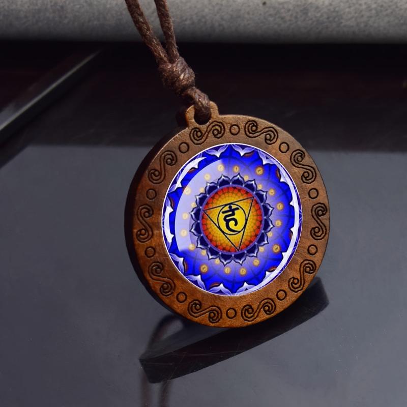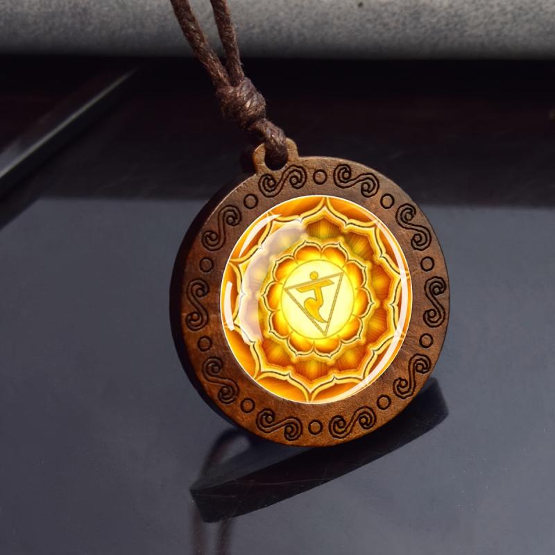 Elevate your spiritual style with this wooden 7 Chakra pendant necklace. The adjustable rope chain allows for a comfortable fit, while the Yoga symbol adds a touch of spirituality to your look.