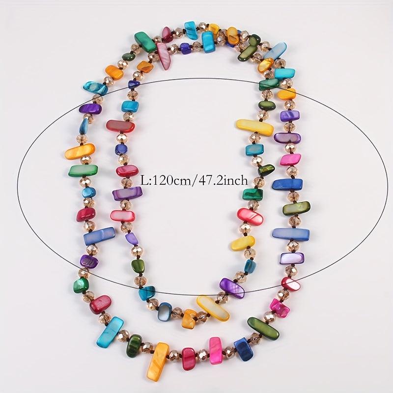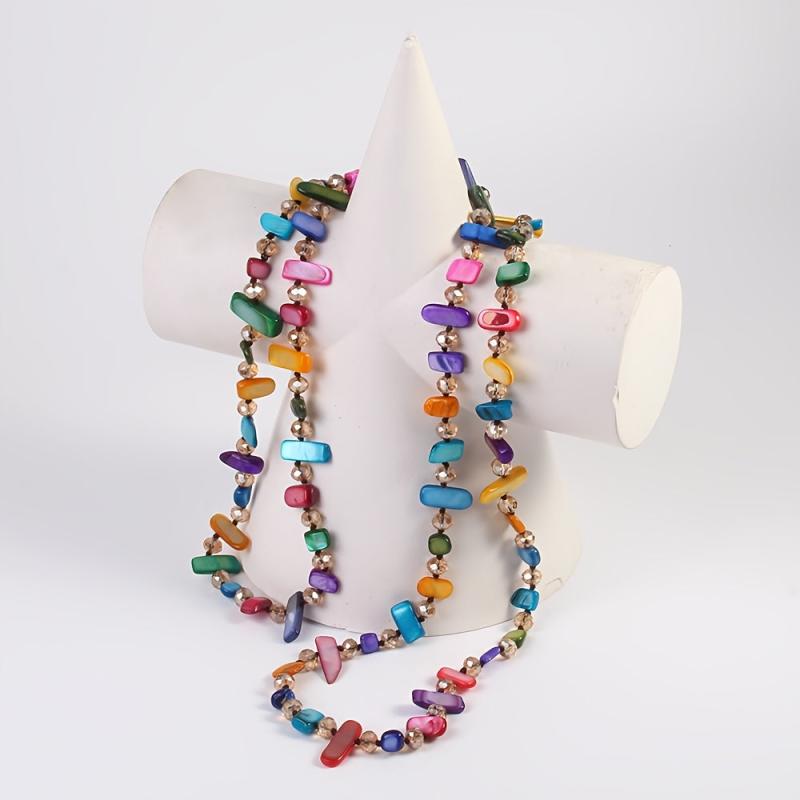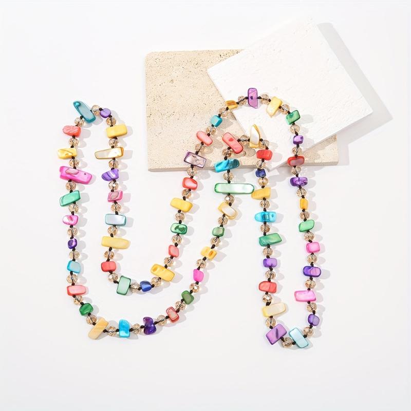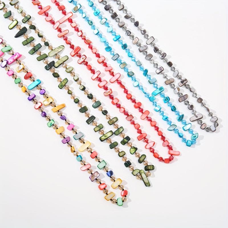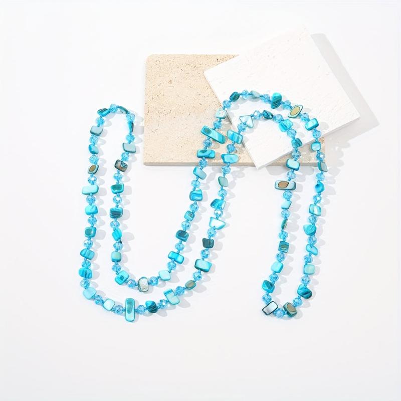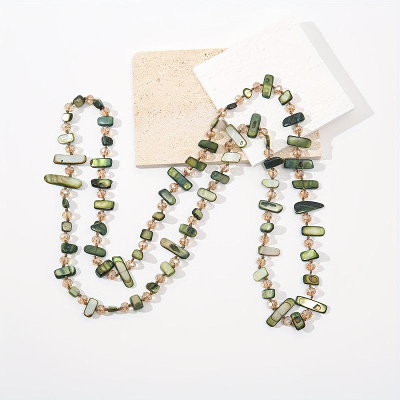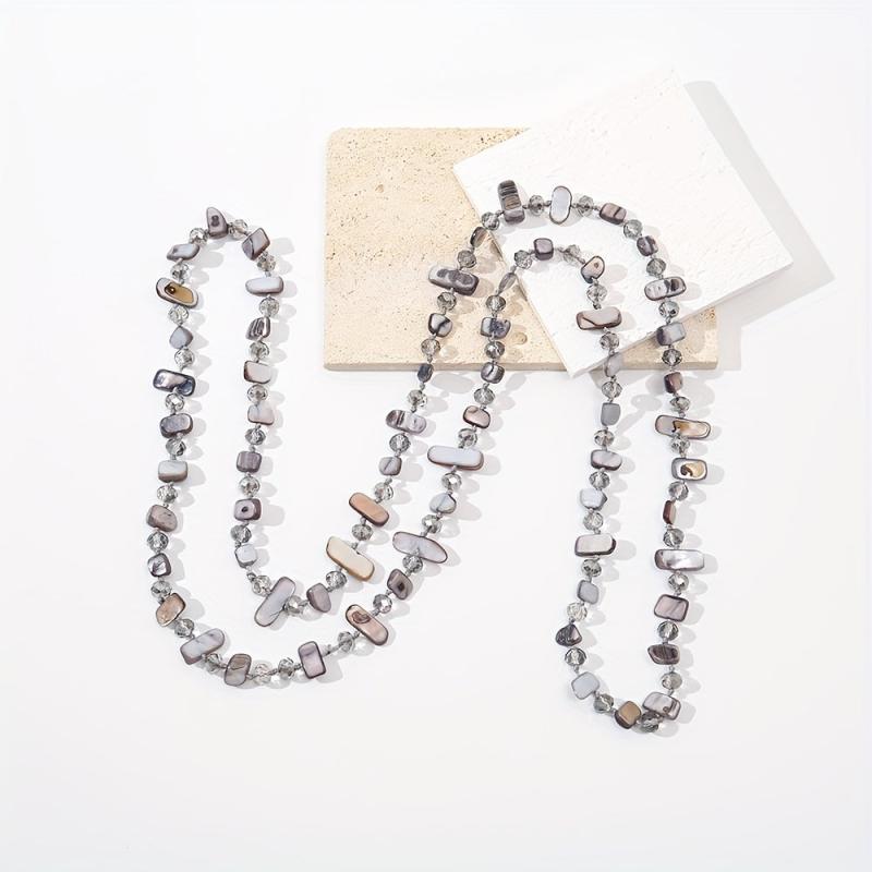Elevate your style with this layered chain necklace featuring shell and glass bead in gray. Perfect for daily wear, parties, and vacations. Durable construction for year-round use.