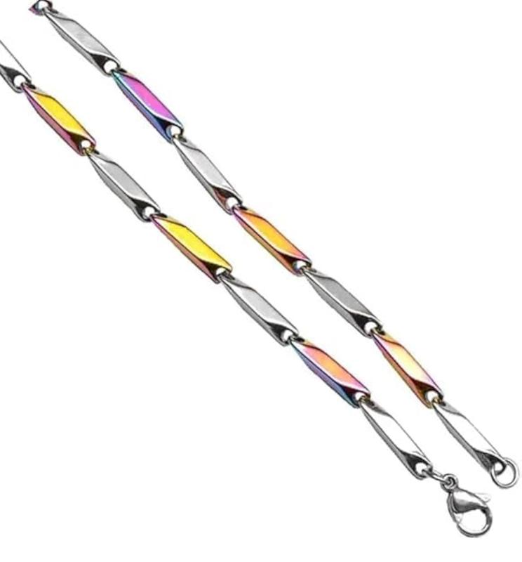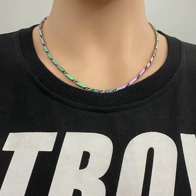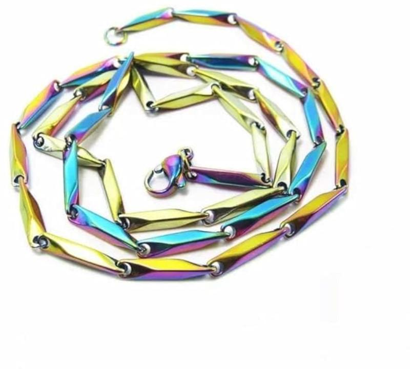 This men's combo necklace features a silver stainless steel chain with a stylish long locket pendant. It is perfect for adding a touch of fashion to any outfit.