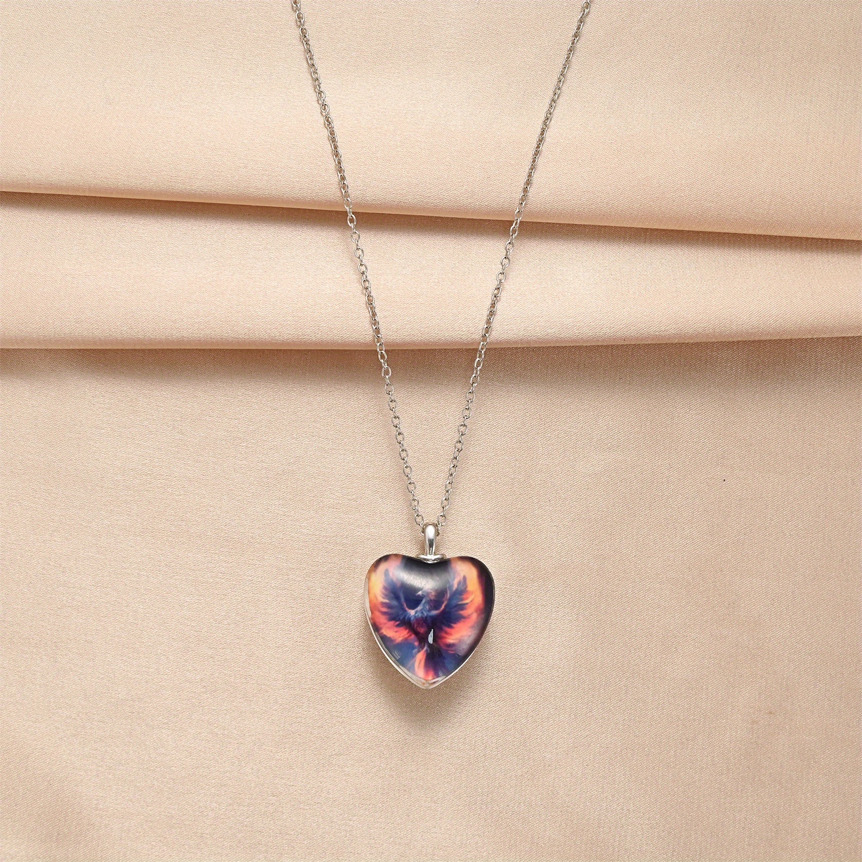 Men's Crystal Heart Pendant With Eagle Wings - Party Jewelry Gift