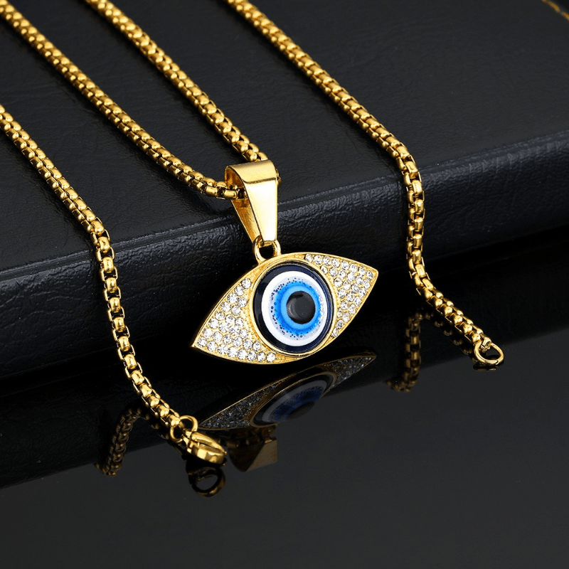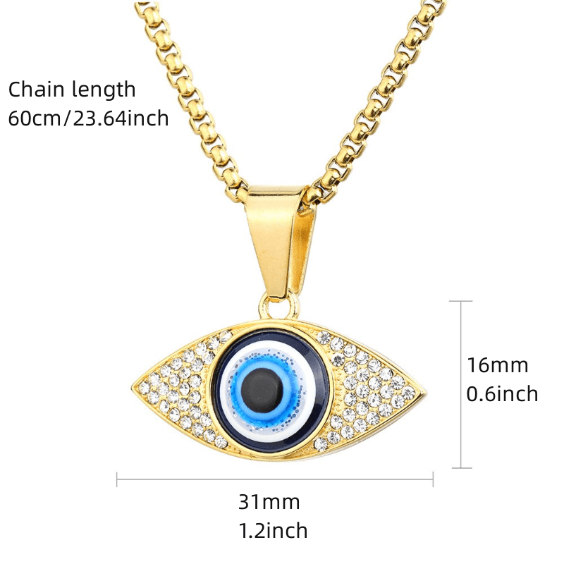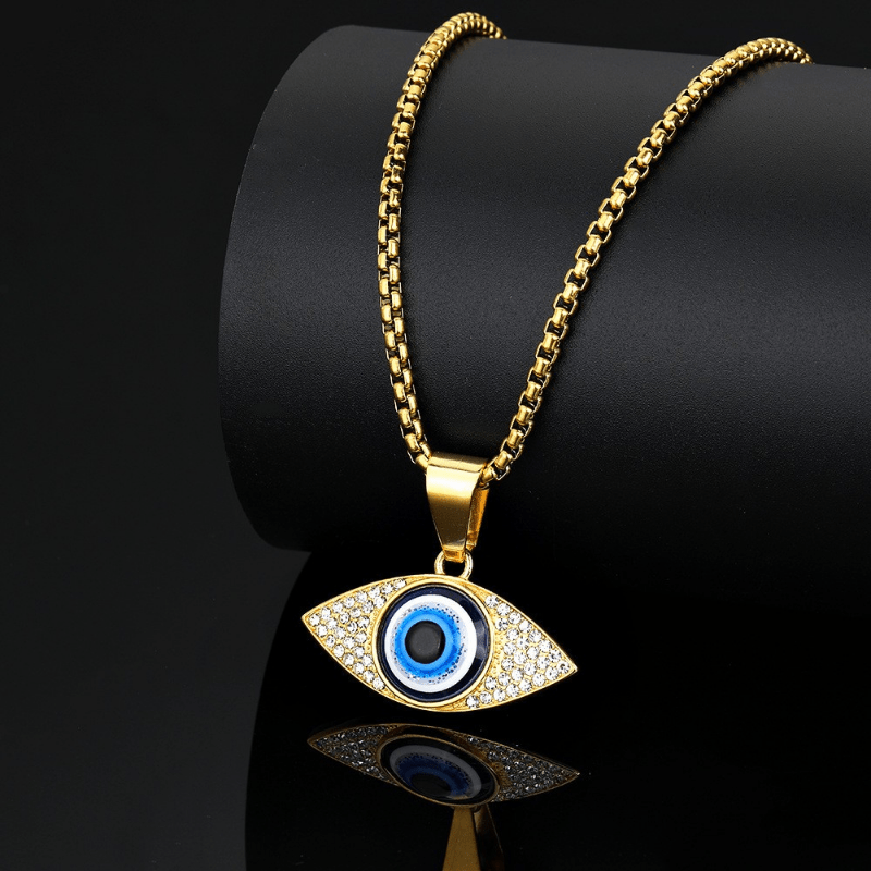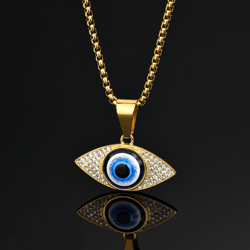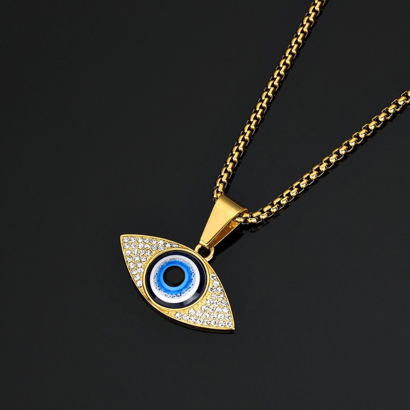 This stylish men's necklace features an artificial diamond inlaid eyes pendant, perfect for hip hop and punk fashion.