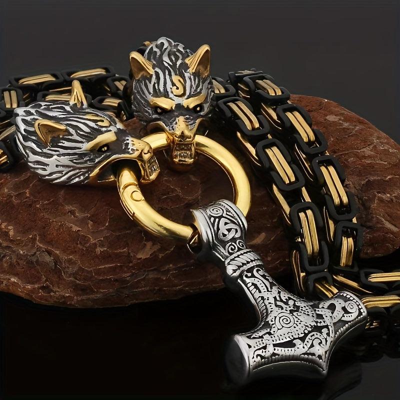 Make a statement with this domineering retro emperor necklace featuring a stainless steel chain with a wolf head pendant.