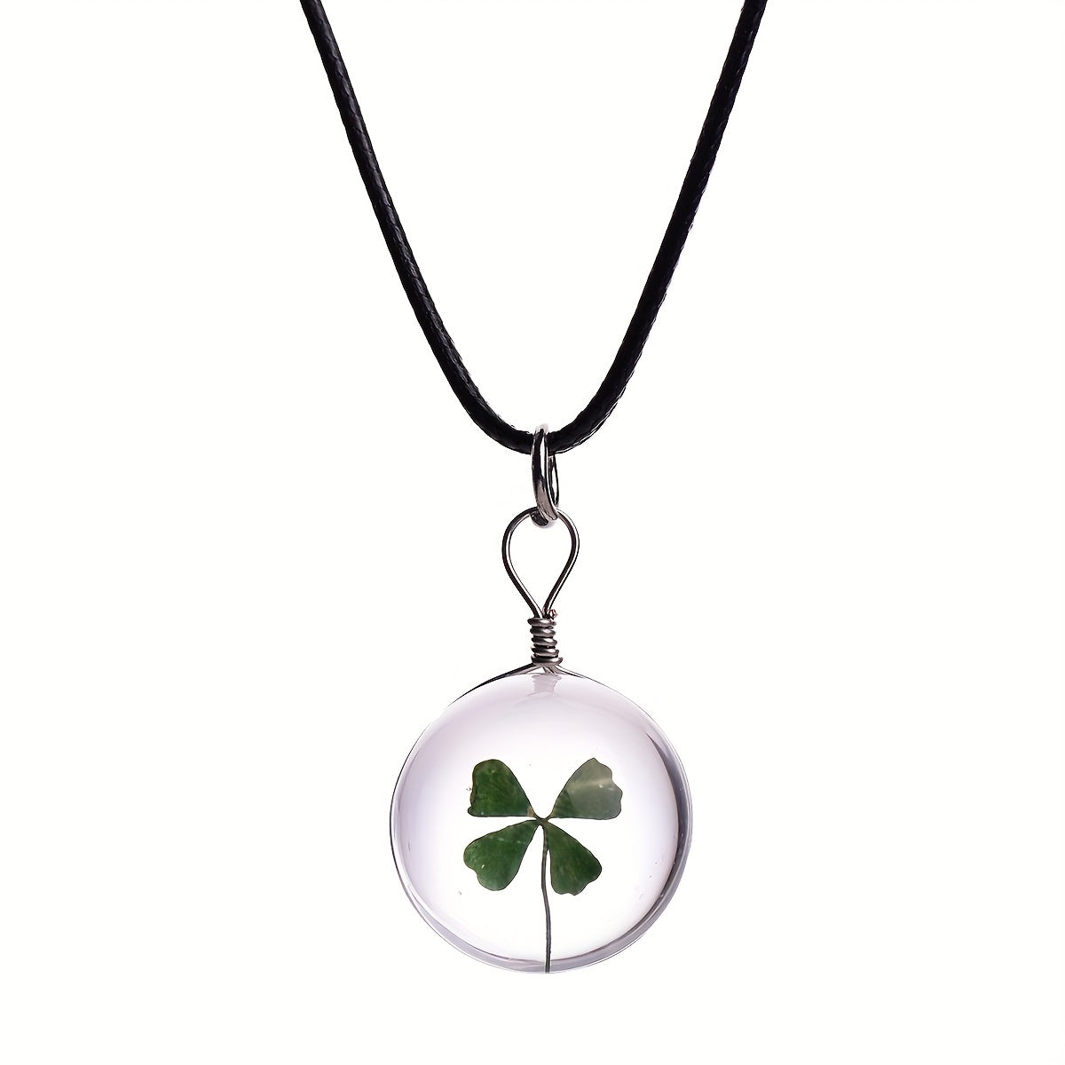 This necklace features a creative design with a dried flower clover enclosed in a glass ball pendant. A unique and versatile accessory for men.