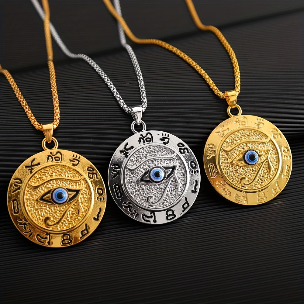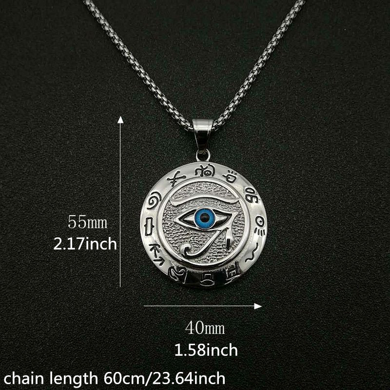 This Egyptian Eye Of Horus pendant necklace is a stylish accessory for men. It makes a great gift for friends and adds a touch of sophistication to any outfit.
