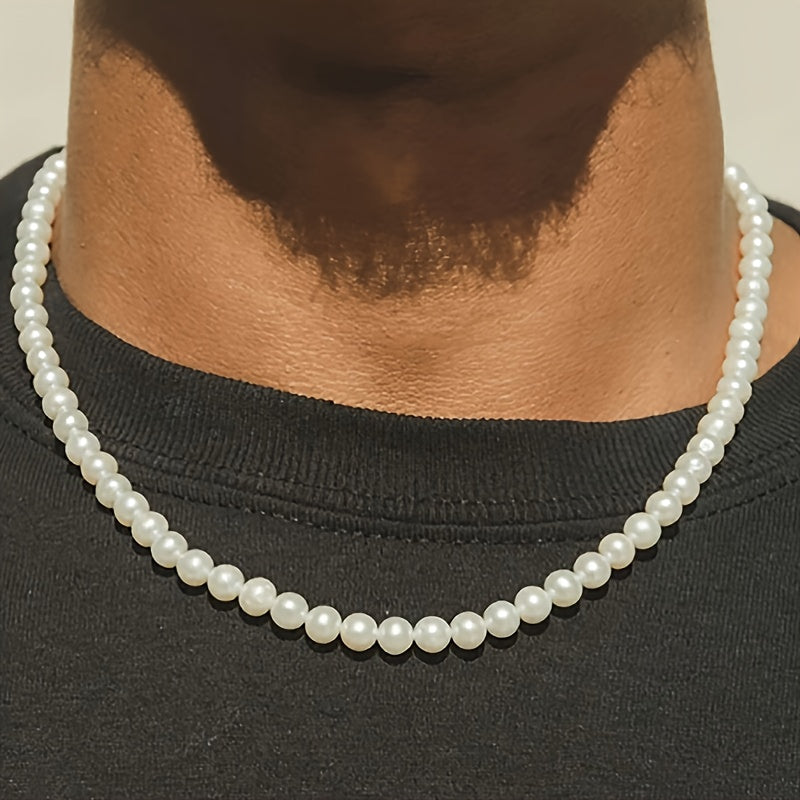 Add a touch of style with this faux pearl beaded necklace for men. Its subtle and sophisticated design complements any outfit.