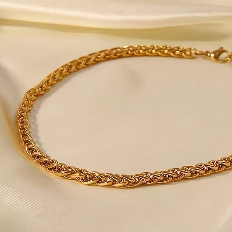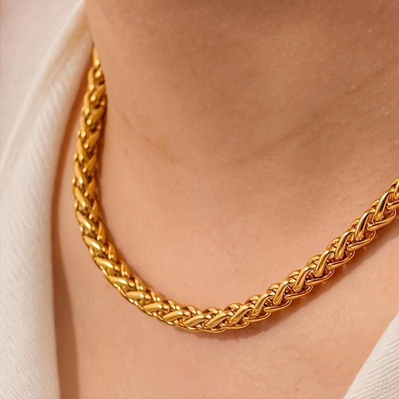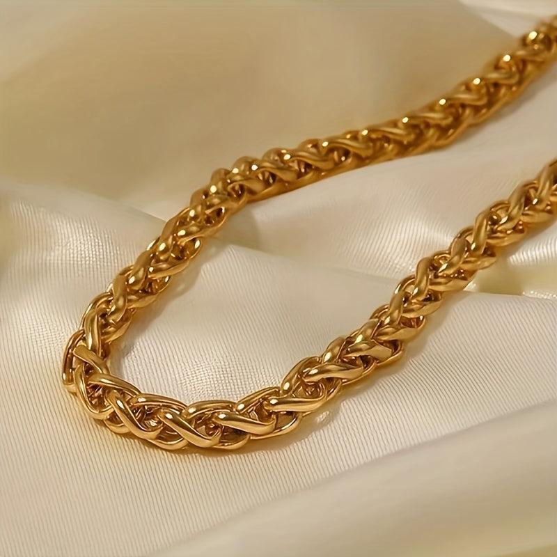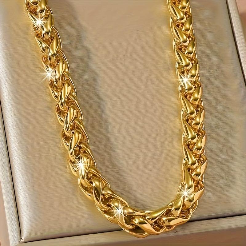 Make a bold statement with this durable and tarnish resistant golden stainless steel braided chain necklace. Perfect for Middle Eastern aristocrats and those who love hip hop style.